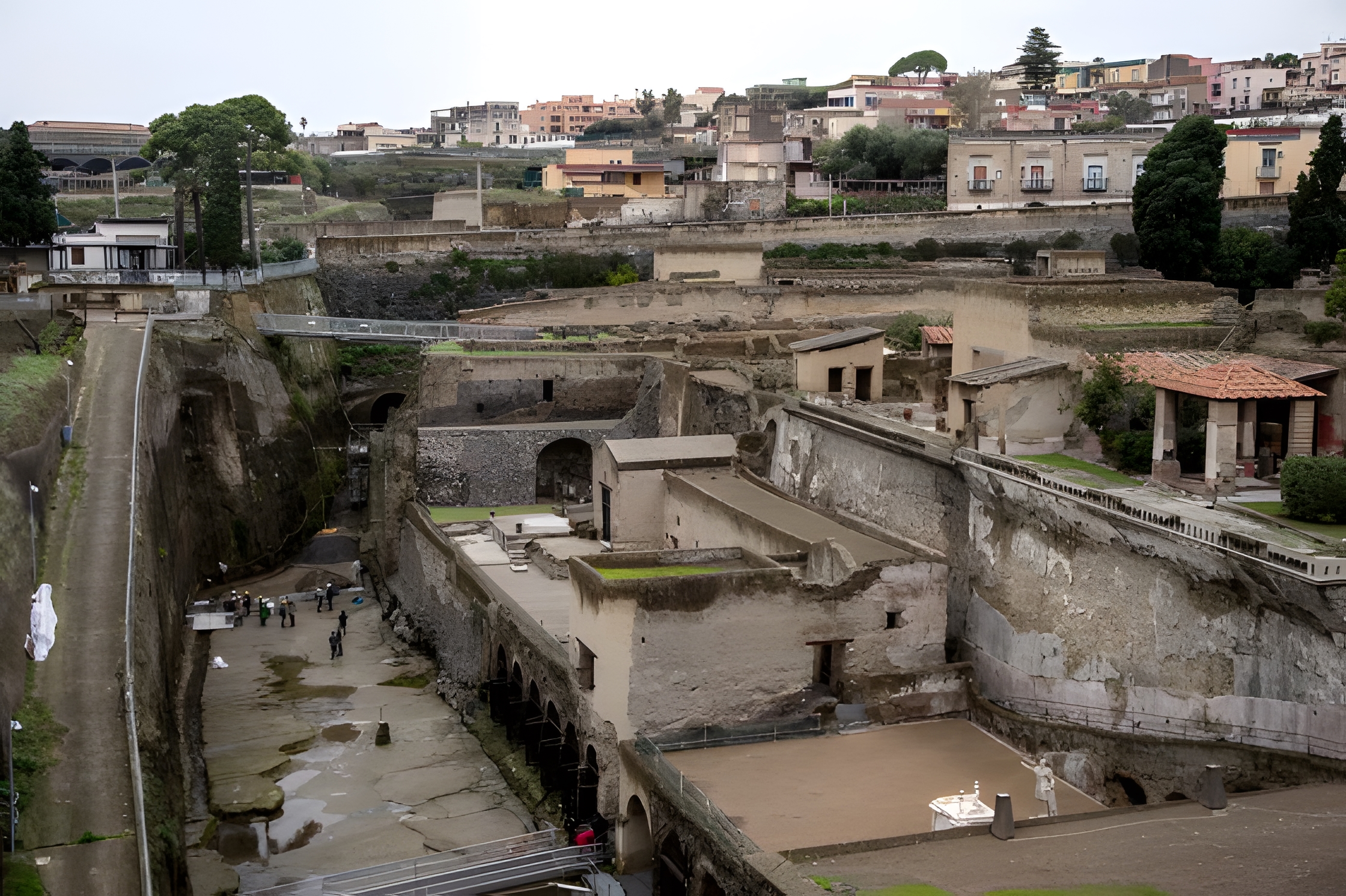 폼페이와 비슷한 처지인 고대 로마 도시 헤르쿨라네움Herculaneum은 서기 79년 베수비오 화산 폭발로 파괴됐다.