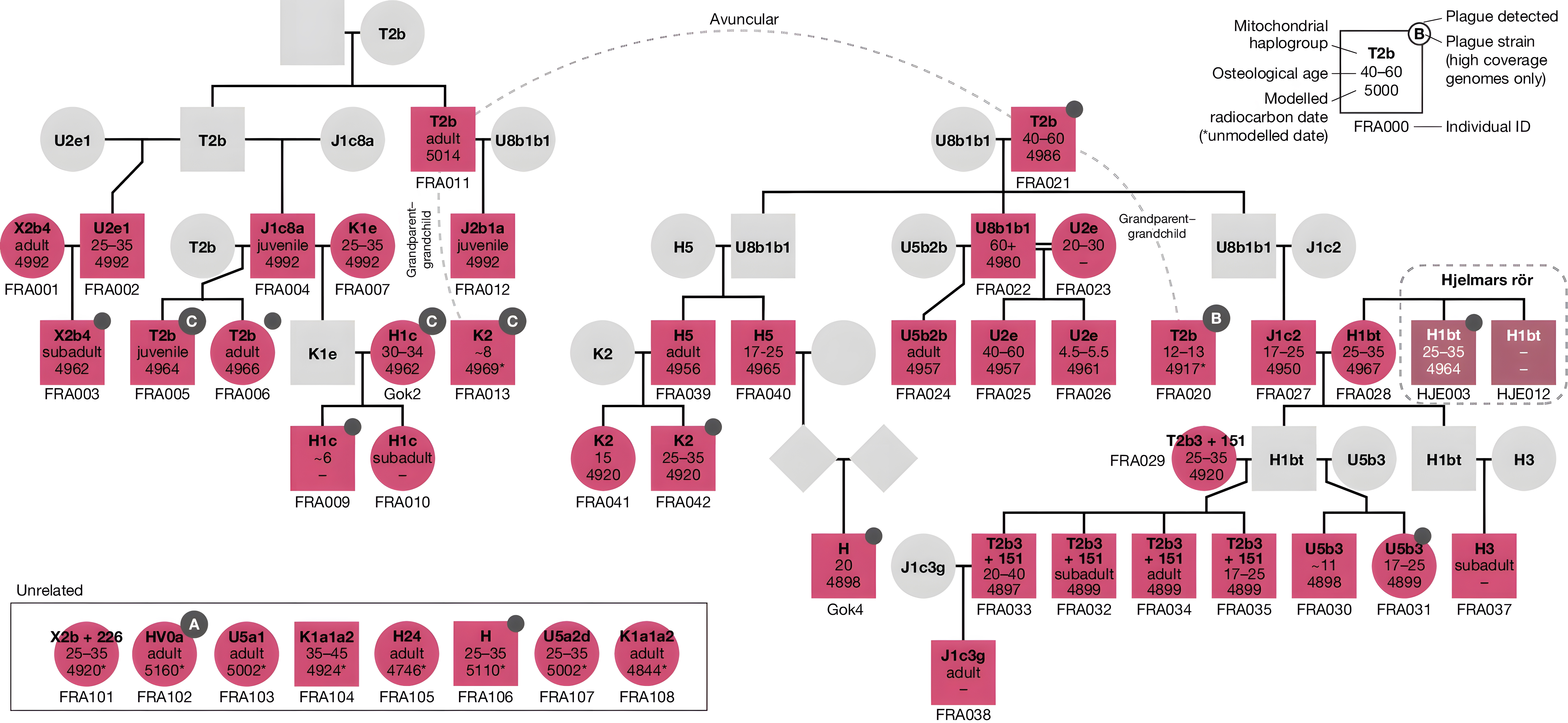 여기에서 우리는 인구 규모의 고대 유전체학을 사용하여 8개 거석 무덤과 1개 석조 무덤에서 스칸디나비아 신석기 시대 개인의 조상, 사회 구조 및 병원체 감염을 추론한다. 우리는 신석기 시대 전염병이 광범위하게 퍼져 있었고, 표본 인구의 최소 17%에서 넓은 지리적 거리에 걸쳐 발견되었음을 발견했다.