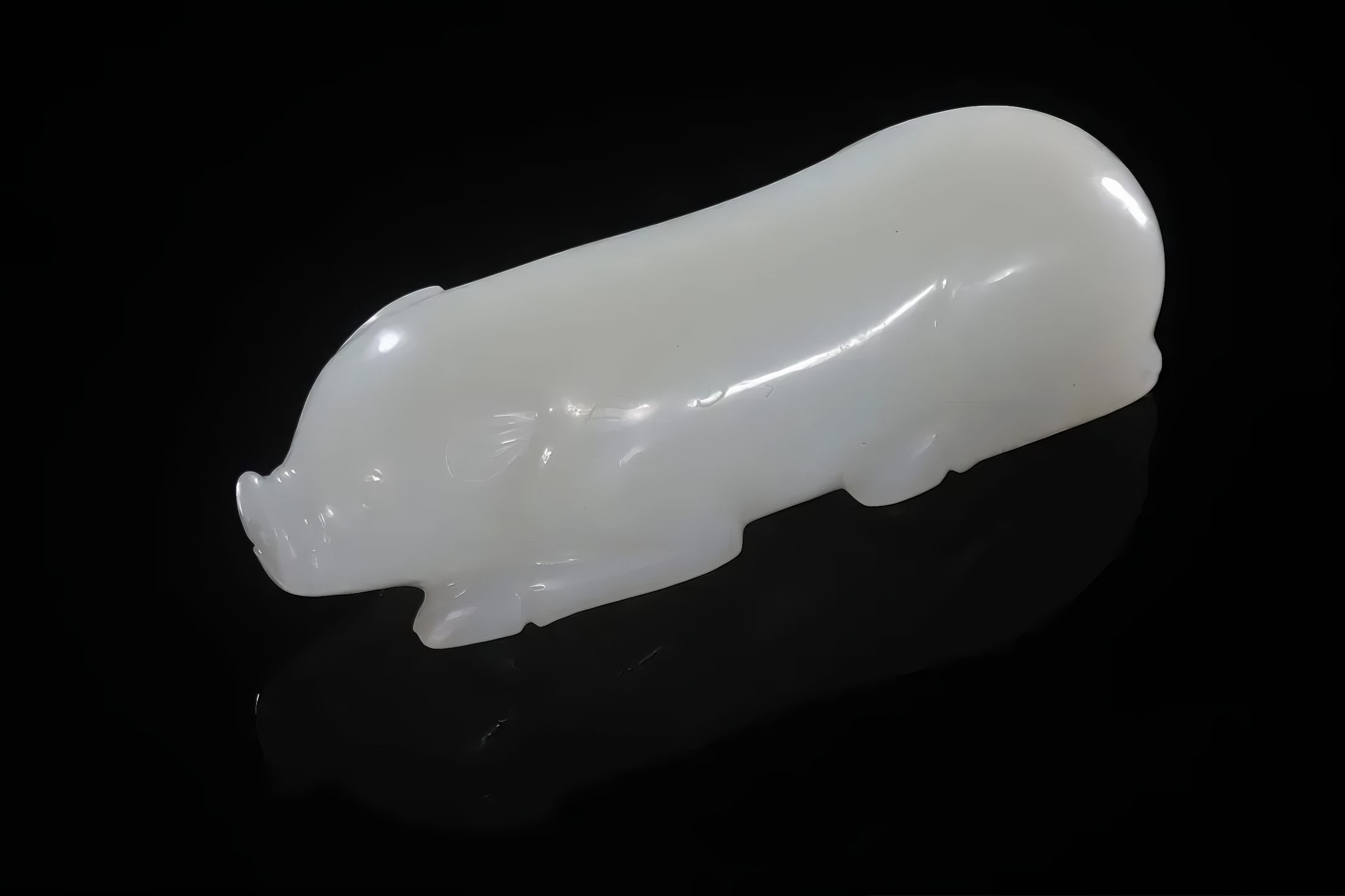 이건 순백옥 돼지라 삼국시대 유물로 옥저형파玉猪形握라 해서 양양시박물관襄阳市博物馆 소장품으로
