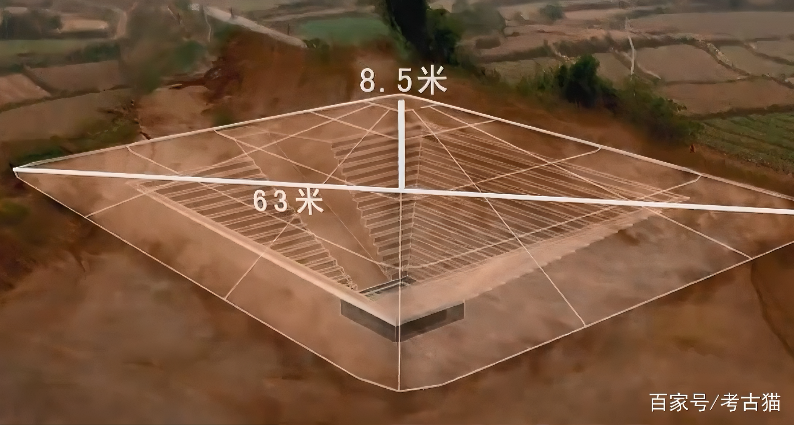 묘구墓口는 길이 34m, 폭 32m이며, 이 묘구에서 곽개판椁盖板까지 깊이는 10.5m, 동쪽 묘도东侧墓道는 길이 약 19m로 묘구에서 덧널판椁盖板까지 15개 계단이 있음이 드러났다.