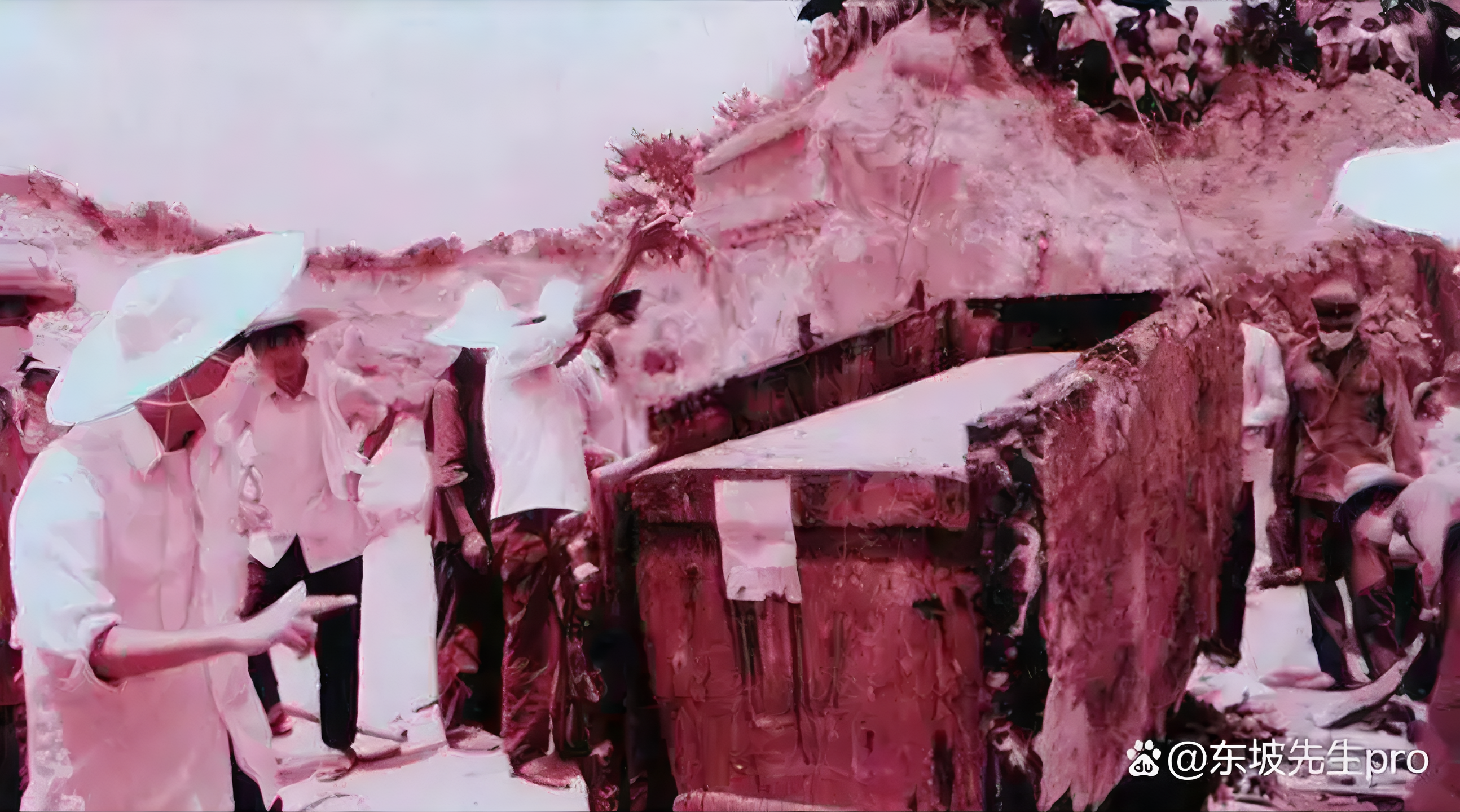 그렇다면 여자 쪽 날염 바지에 점점이 찍힌 붉은 반점은 무엇일까?