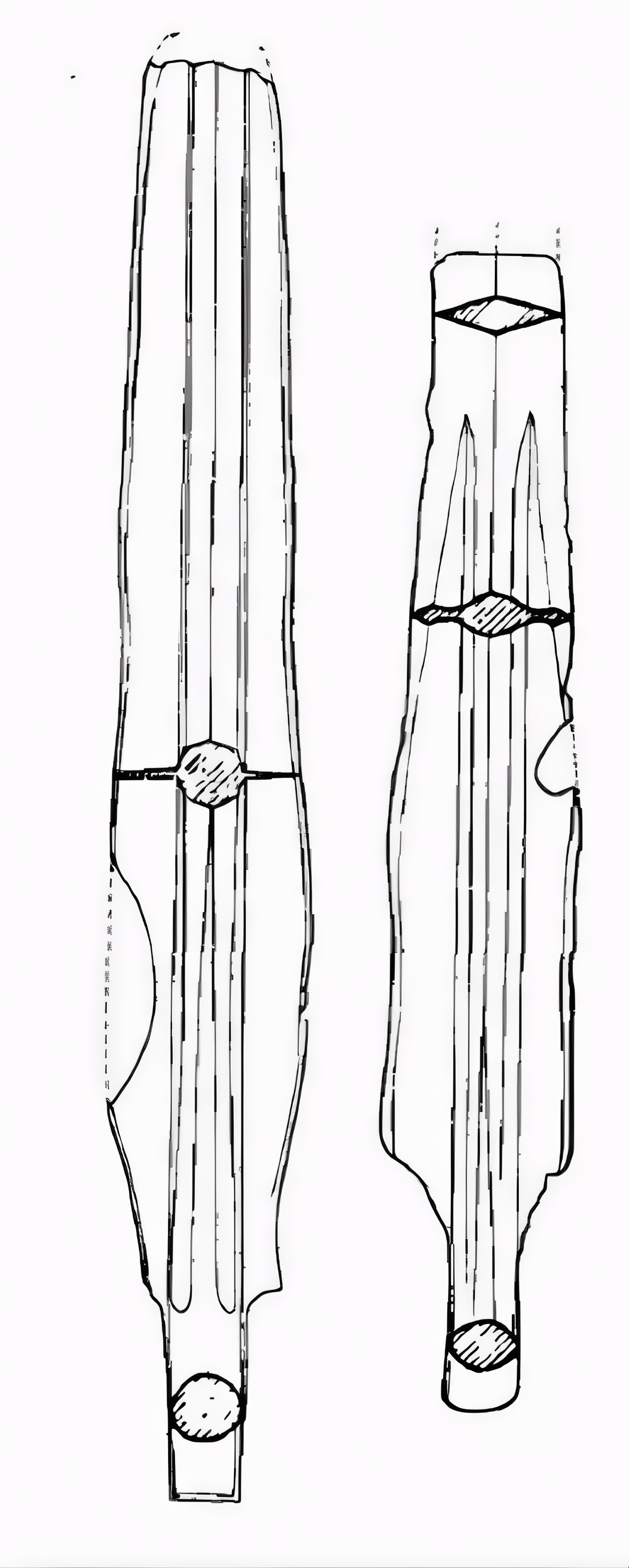 비록 앞부분이 부러졌지만, 이것이 두 자루 검일 것이라고 판단할 수 있지만, 그들의 기묘한 모양은 당시만 해도 이해하기 어려웠다.