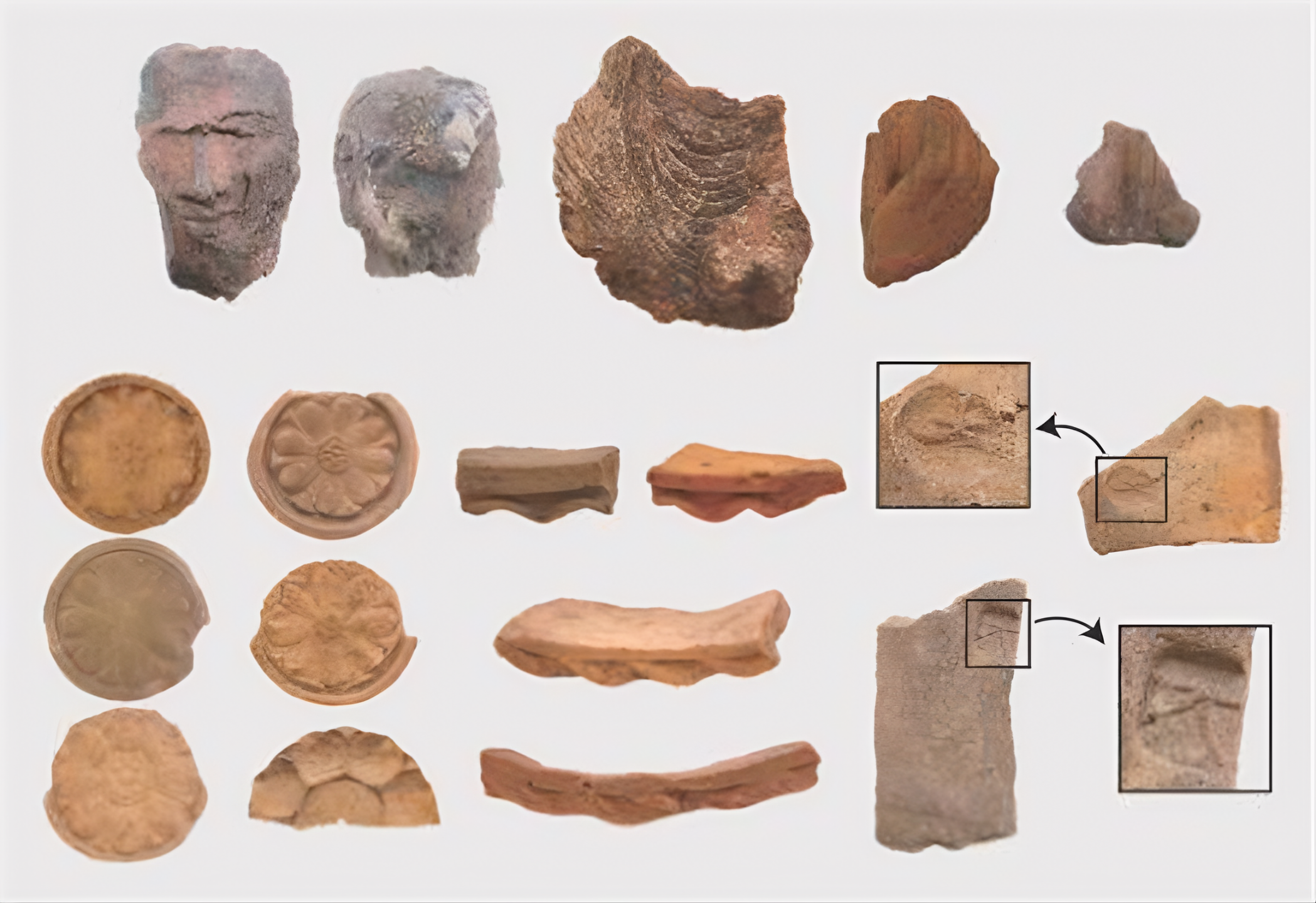 如컨대 연화문 수막새, 지두문 암막새 등 막새류와 평기와류가 대량으로 출토됐으며 ‘大’ 자명 인장와, ‘寺’ 자명 명문와, 치미, 회칠 된 소결편 등도 출토됐다.