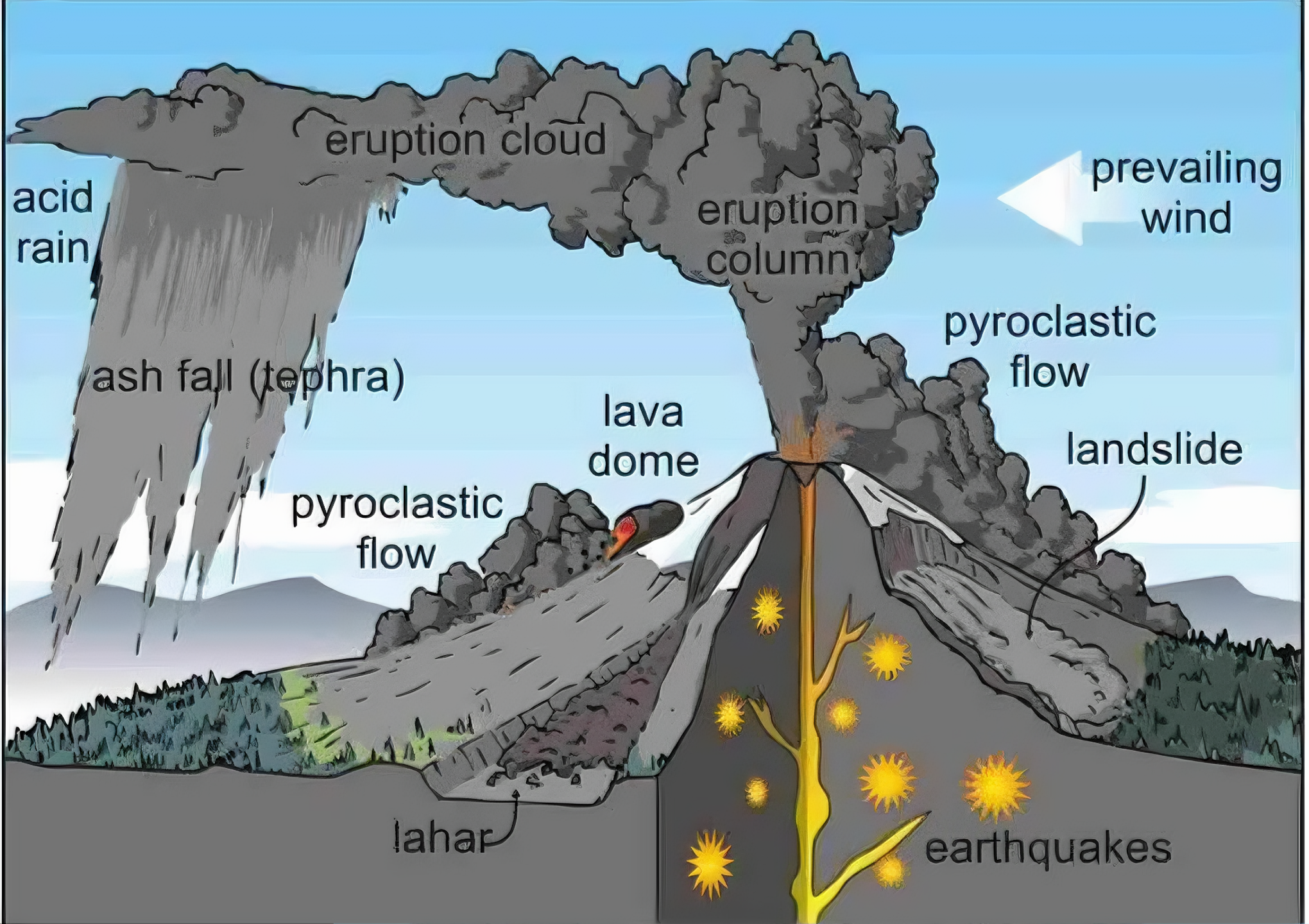 화산 폭발의 영향은 1차적 영향과 2차적 영향으로 나눌 수 있다.