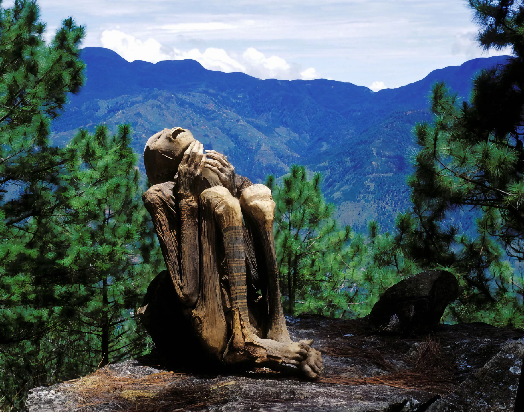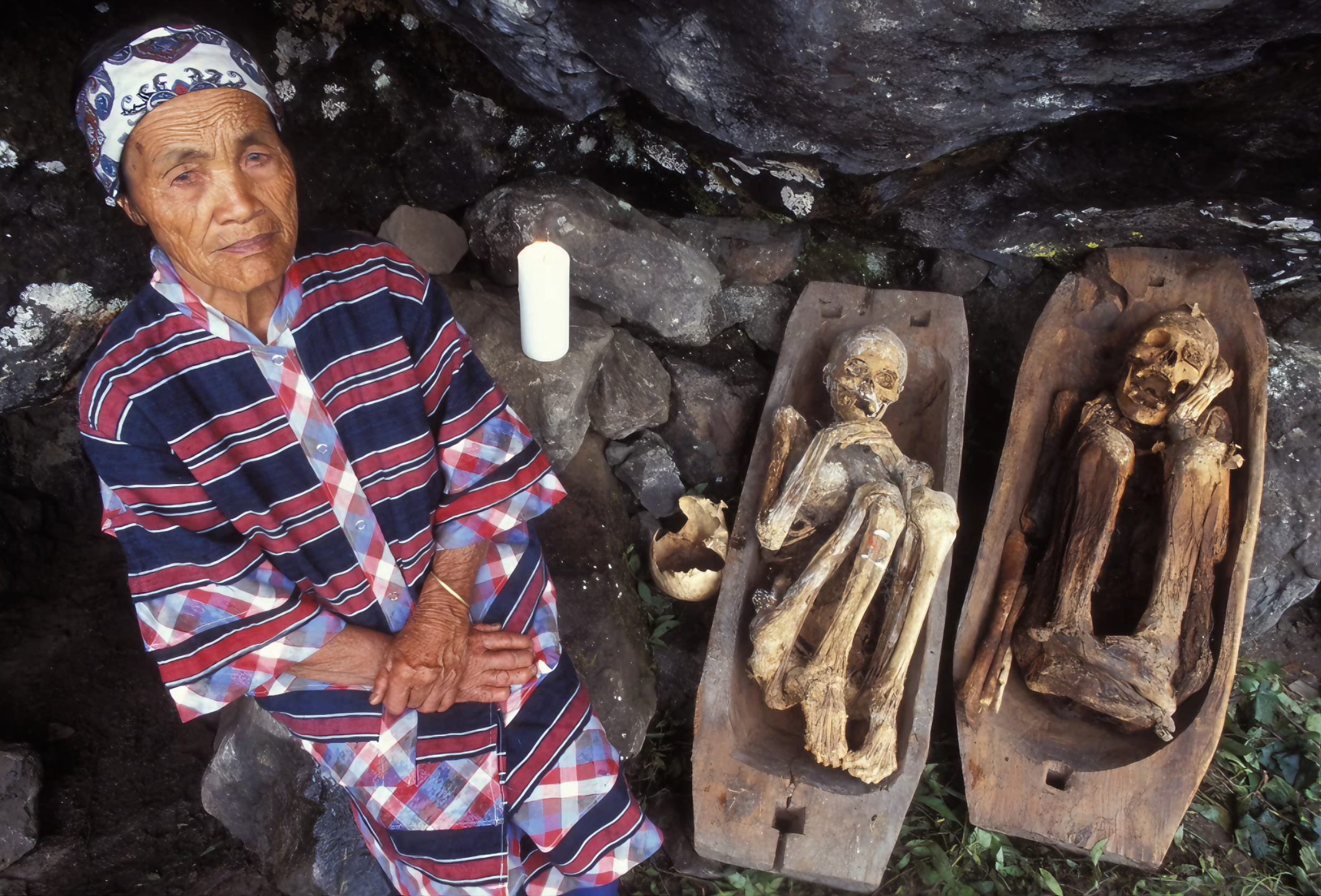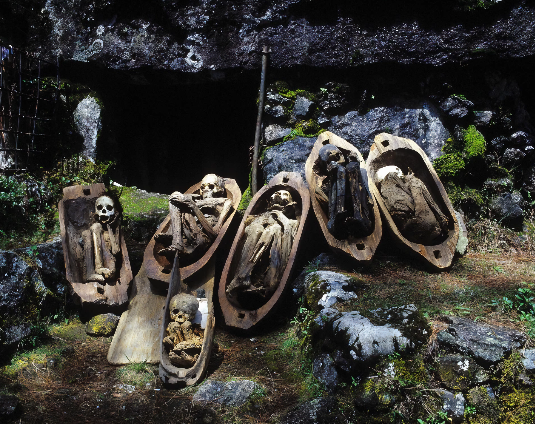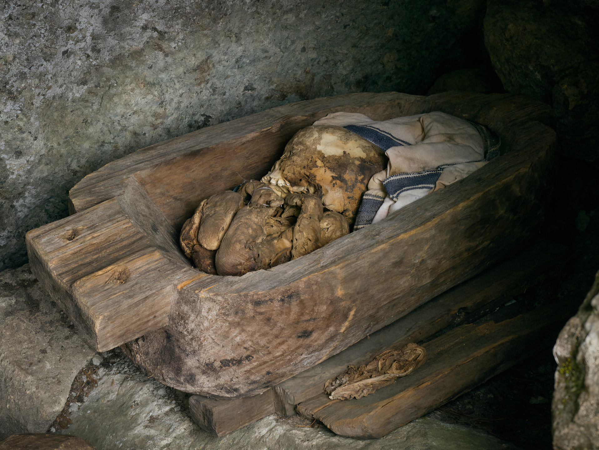 그런 다음 미라화한 시체를 소나무로 만든 관에 넣고 바위 은신처, 자연 동굴 또는 인공 매장 틈새에 안치한다.