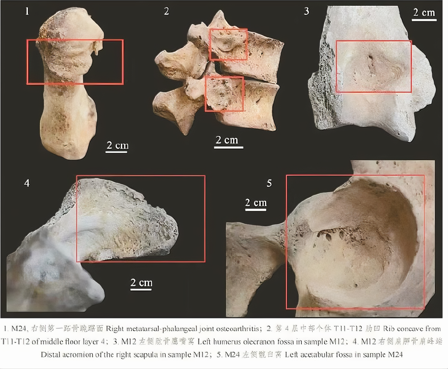 나아가 장골능선掌骨骨嵴의 굵고 이상한 굴곡异常弯曲은 장기간 반복적인 도기 제작 동작으로 인한 골격의 특이성 변화다.