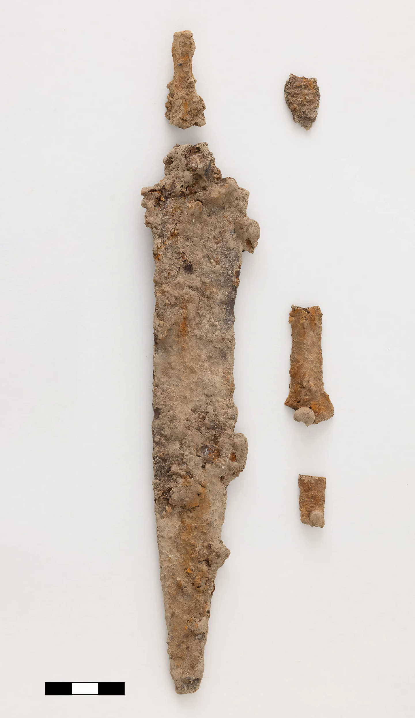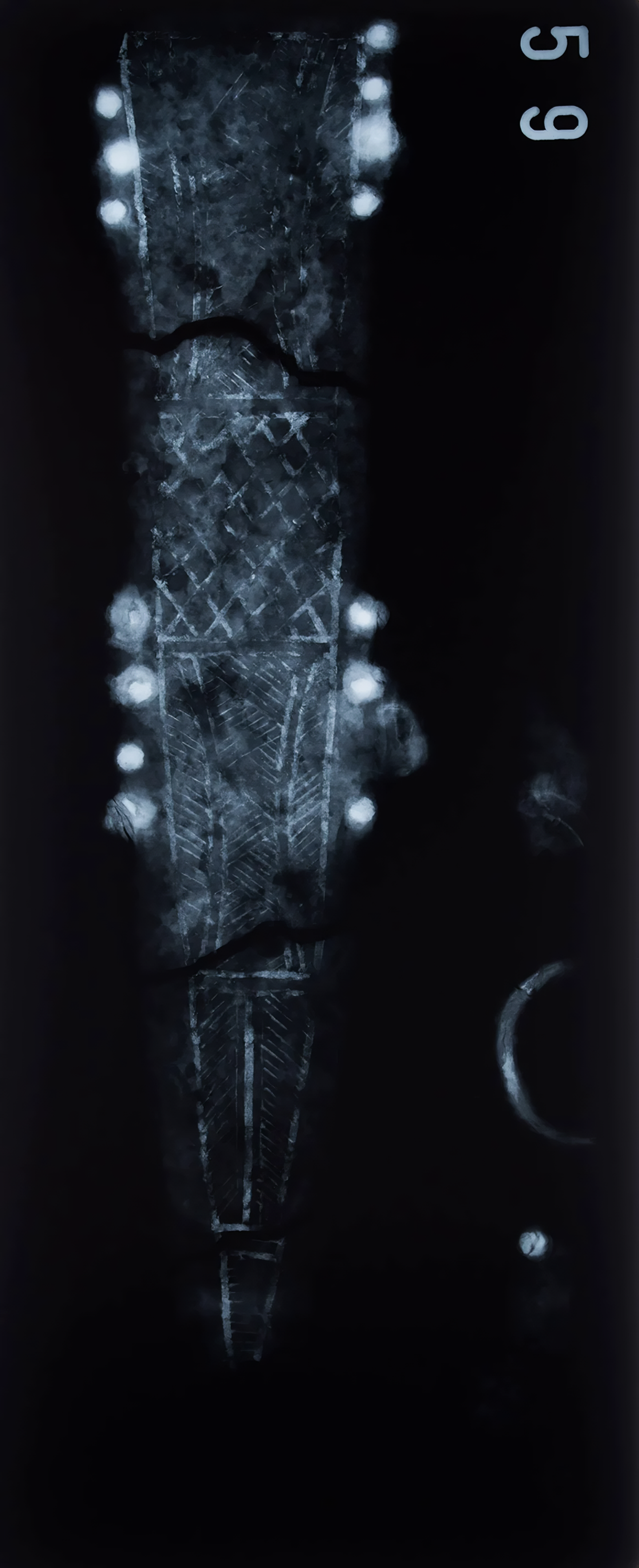 녹이 슬고 부식한 철제 단검 칼집을 엑스레이 촬영한 결과, 은선으로 장식한 전형적인 로마식 장식이 드러났다.