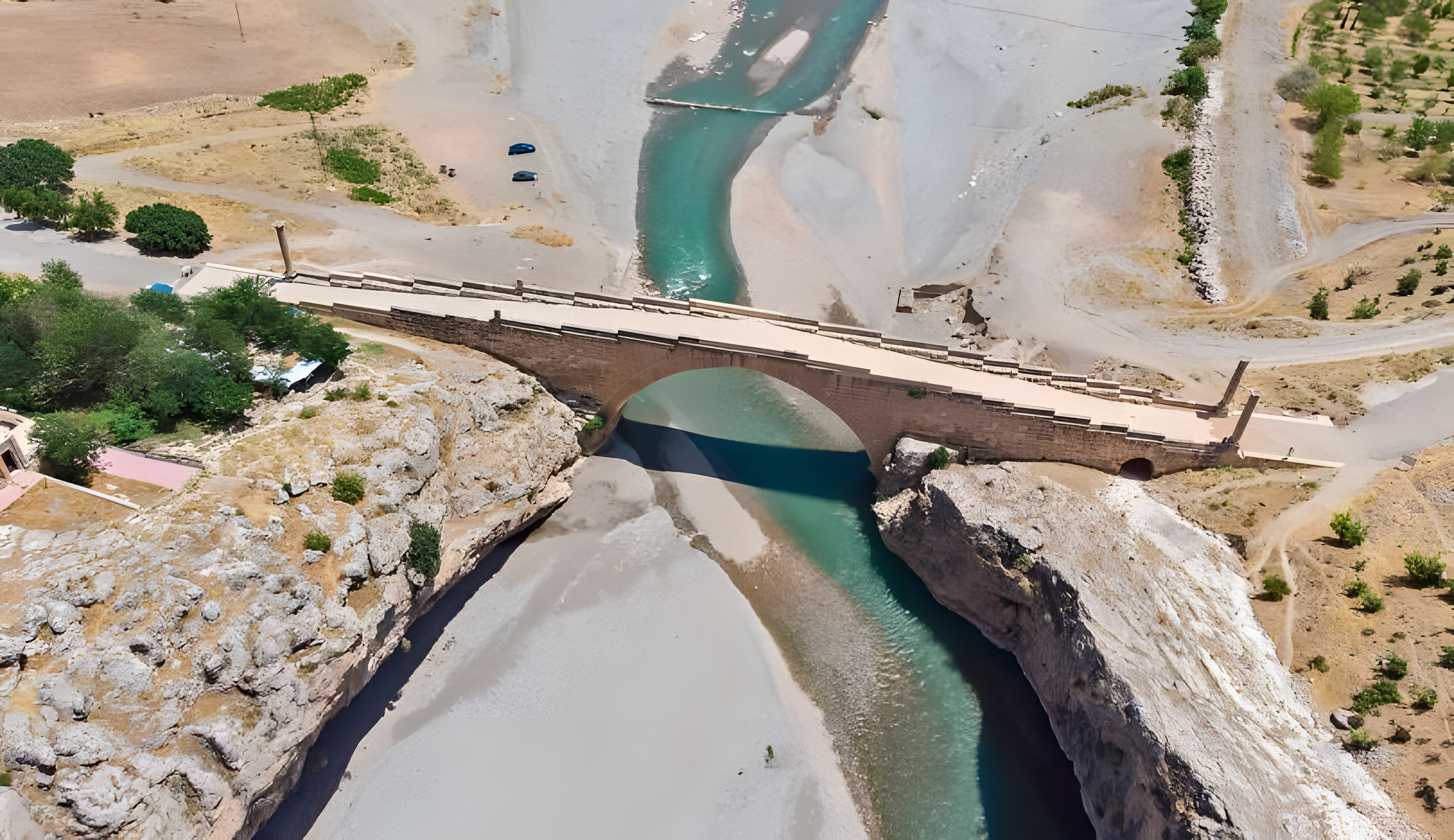 이 다리는 터키 남동부 아디야만에서 북동쪽으로 55km 떨어진 고대 도시 아르사메이아 Arsameia (현재의 에스키칼레 Eskikale ) 근처에 위치한 후기 로마 시대 교량이다.