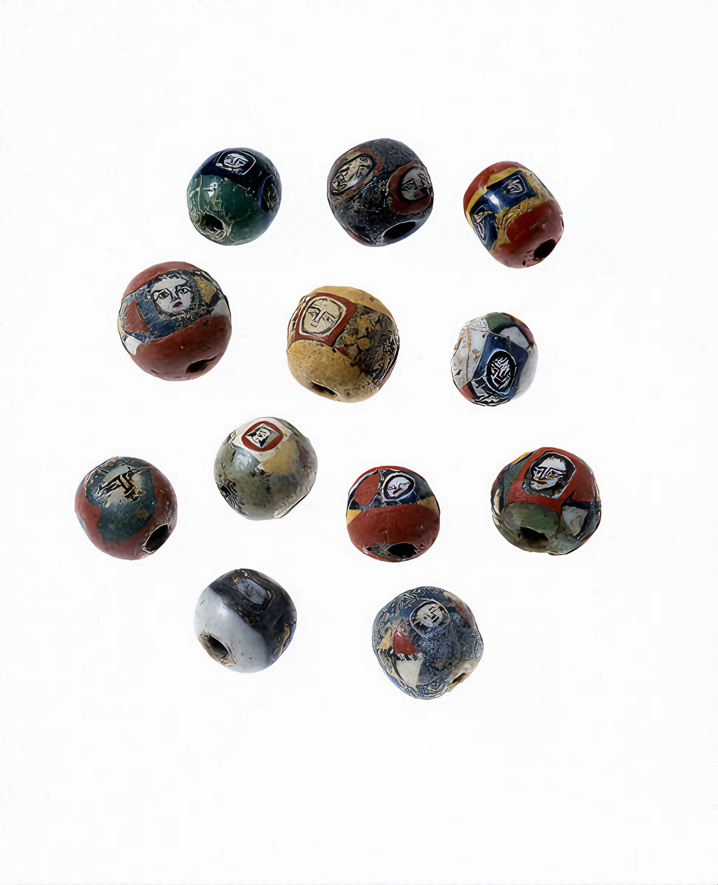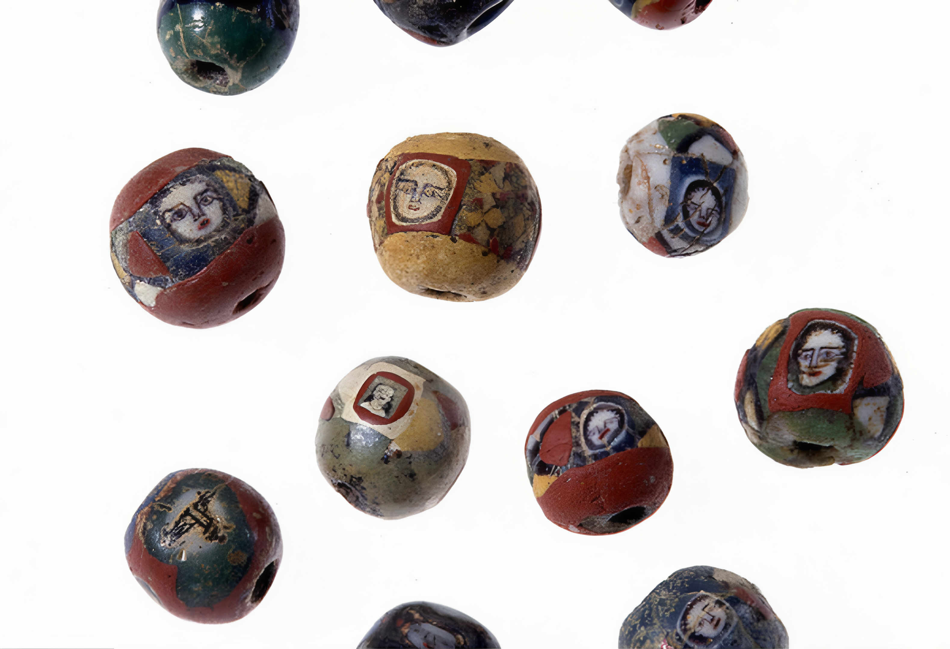 저와 같은 유리구슬은 로마시대 유산으로 정교한 얼굴 묘사를 특징으로 삼는다.