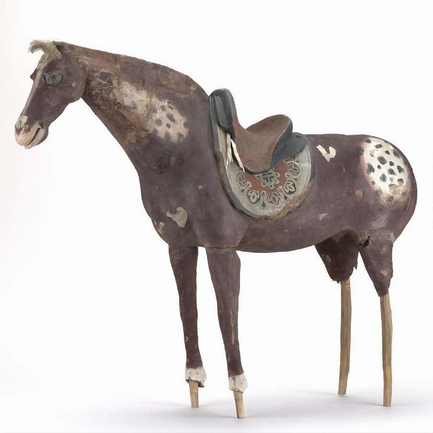 중국 투르판Turpan 남동부 그 유명한 고대 아스타나 고분군Astana Cemetery 중 한 무덤에서 발견된 말 조각이다.