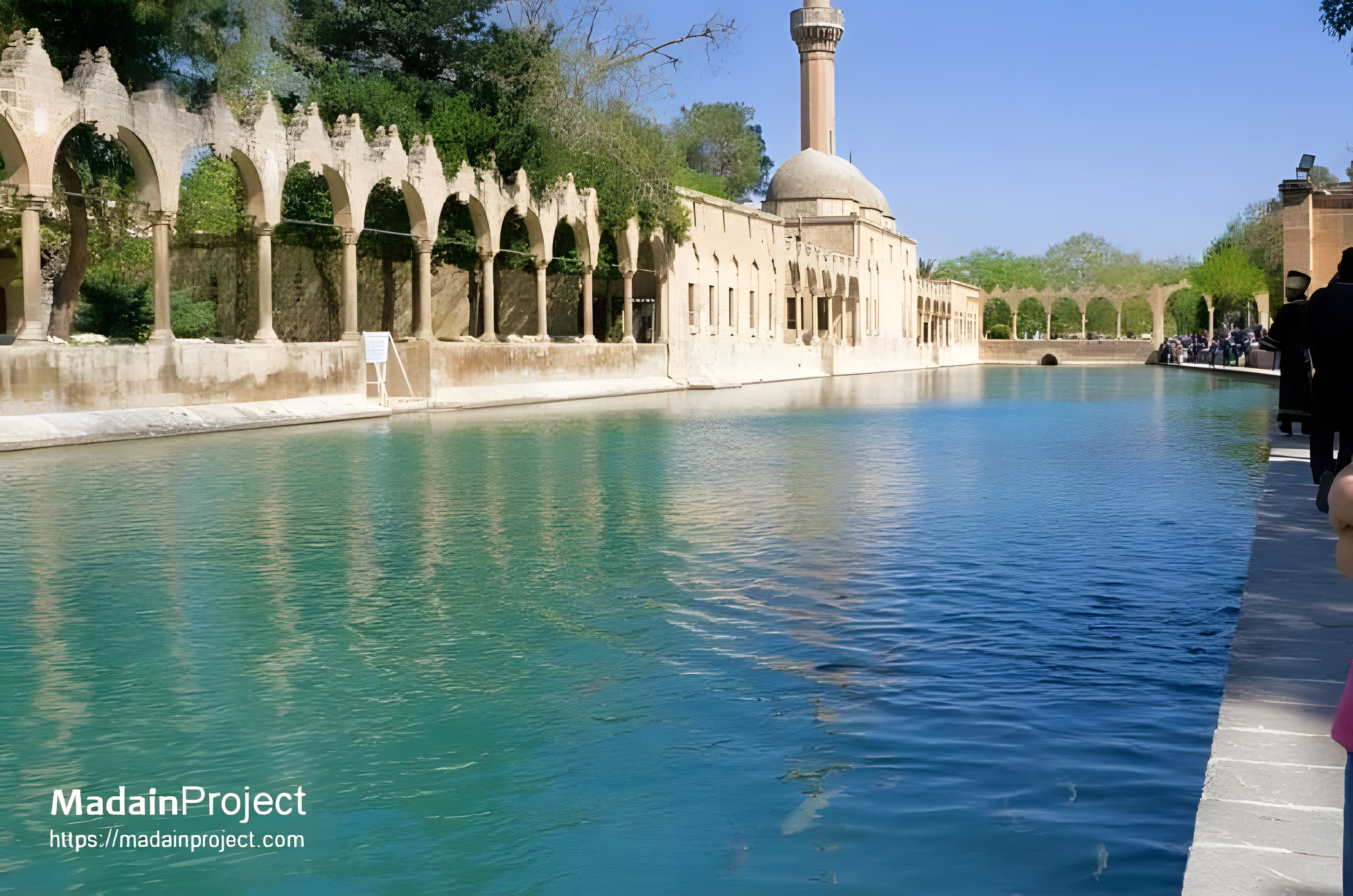 Mevlid-i Halil 모스크에 있는 예언자 이브라힘 탄생지 근처에 있는 신성한 물고기 연못이 있다.