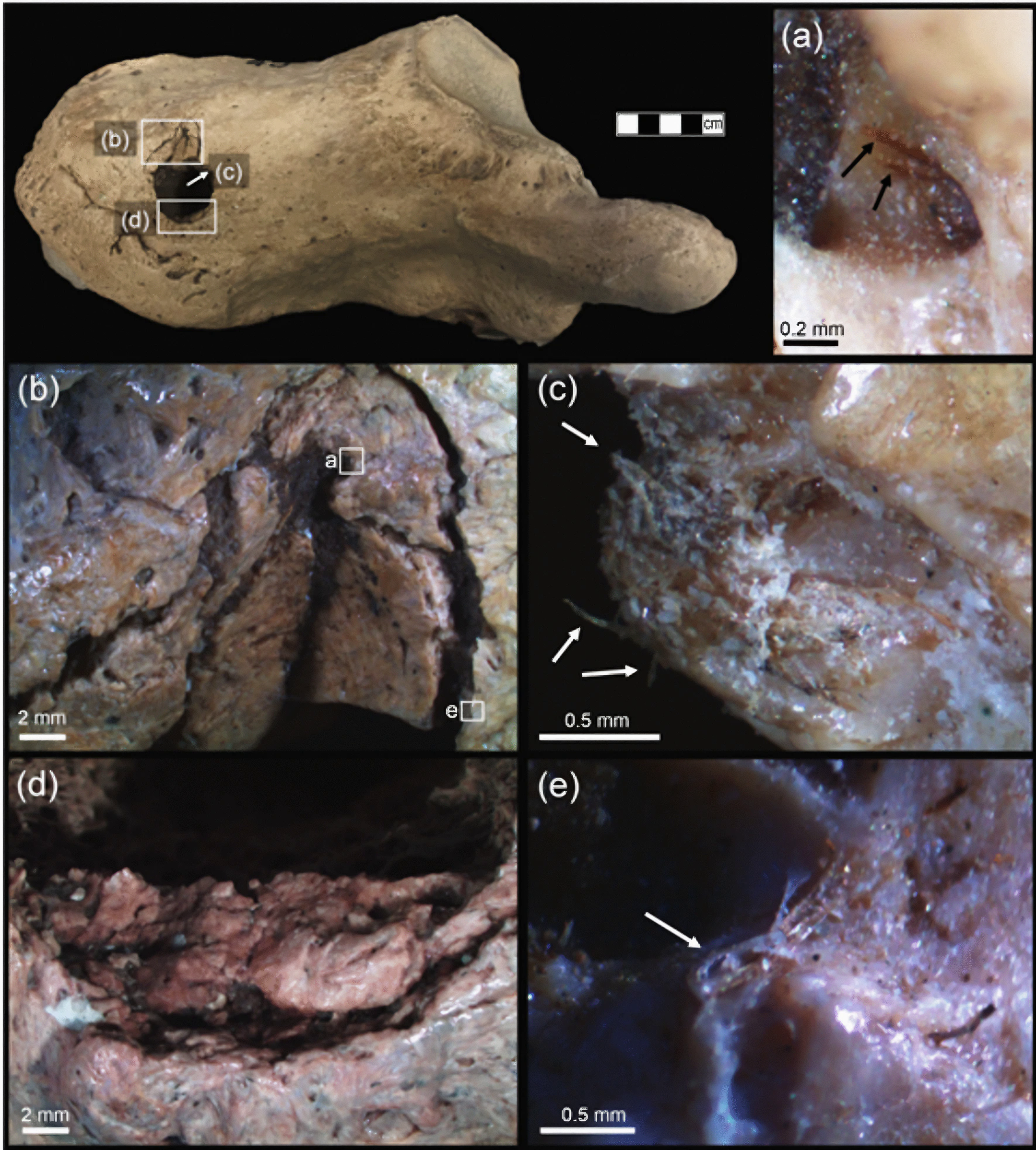 이는 외상뿐만 아니라 나무나 수염처럼 굳어진 팁whisker-hardened tips과 같은 도구 제작 잔류물이 전이되었을 가능성을 시사한다.