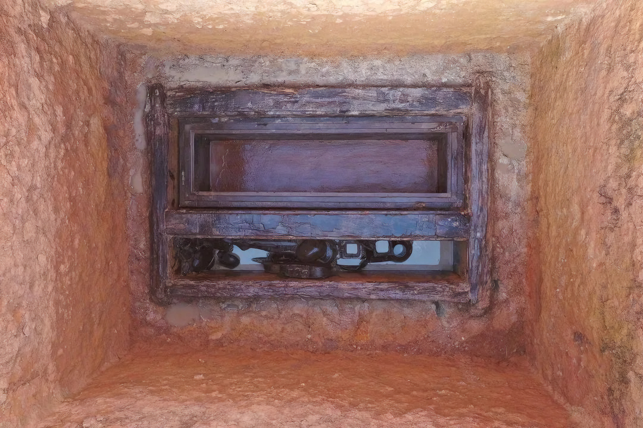 관은 모두 썩었고, 무덤 밑바닥에는 관 흔적이나 침목 홈이 보인다.