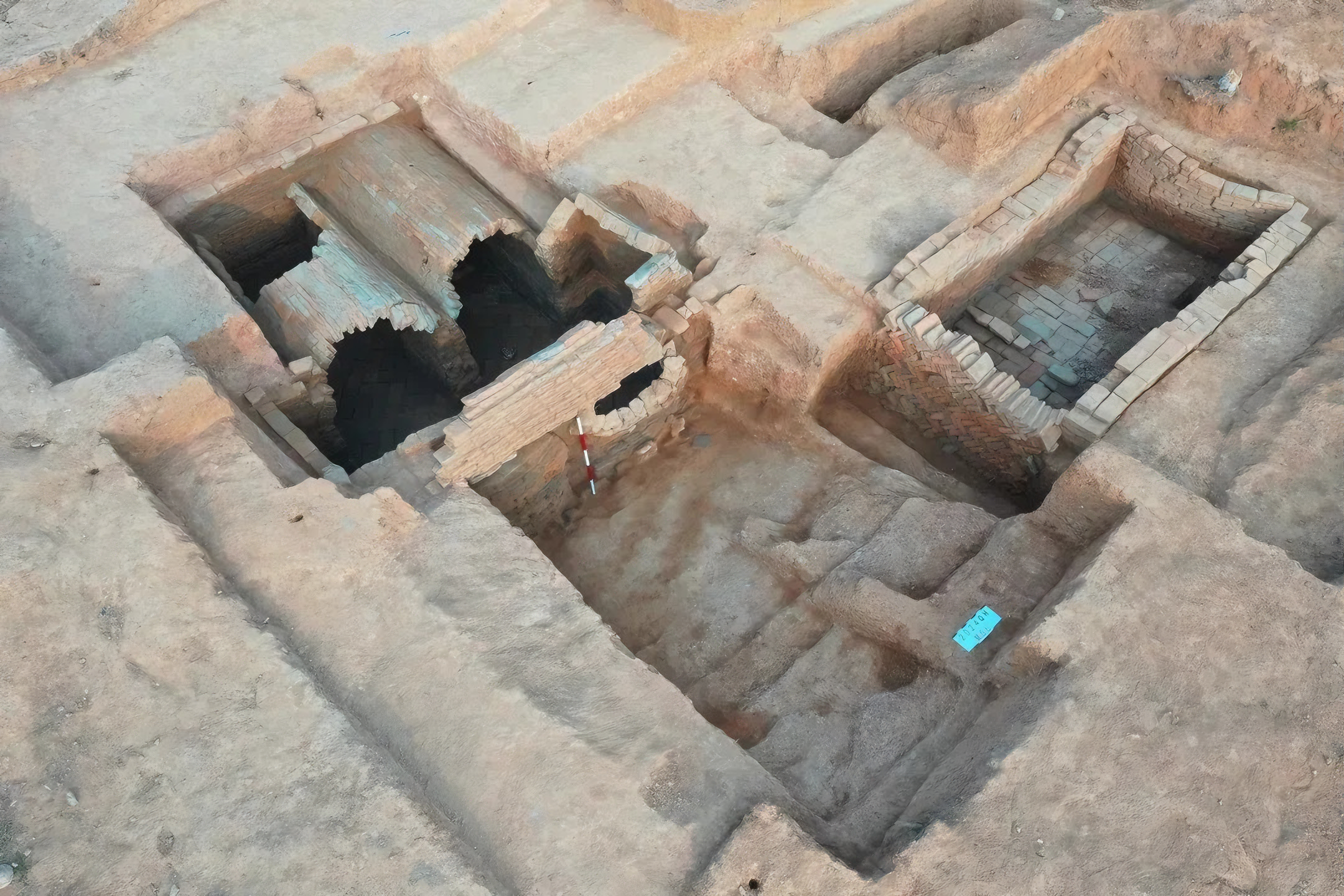 또한 2개 벽돌 무덤은 여러 개 묘실로 구성되며 묘도, 봉문장封门墙, 복도甬道, 횡전실横前室 및 후실后室로 구성된다.