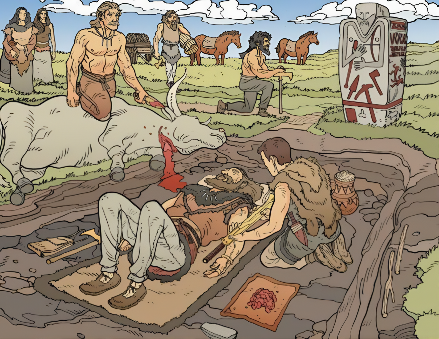 얌나야 문화Yamnaya culture 쿠르간kurgans은 장례 관습의 핵심 요소였던 거대한 무덤을 지칭하며, 이것은 그들의 사회 구조, 신앙, 그리고 이주에 대한 중요한 통찰을 제공한다.