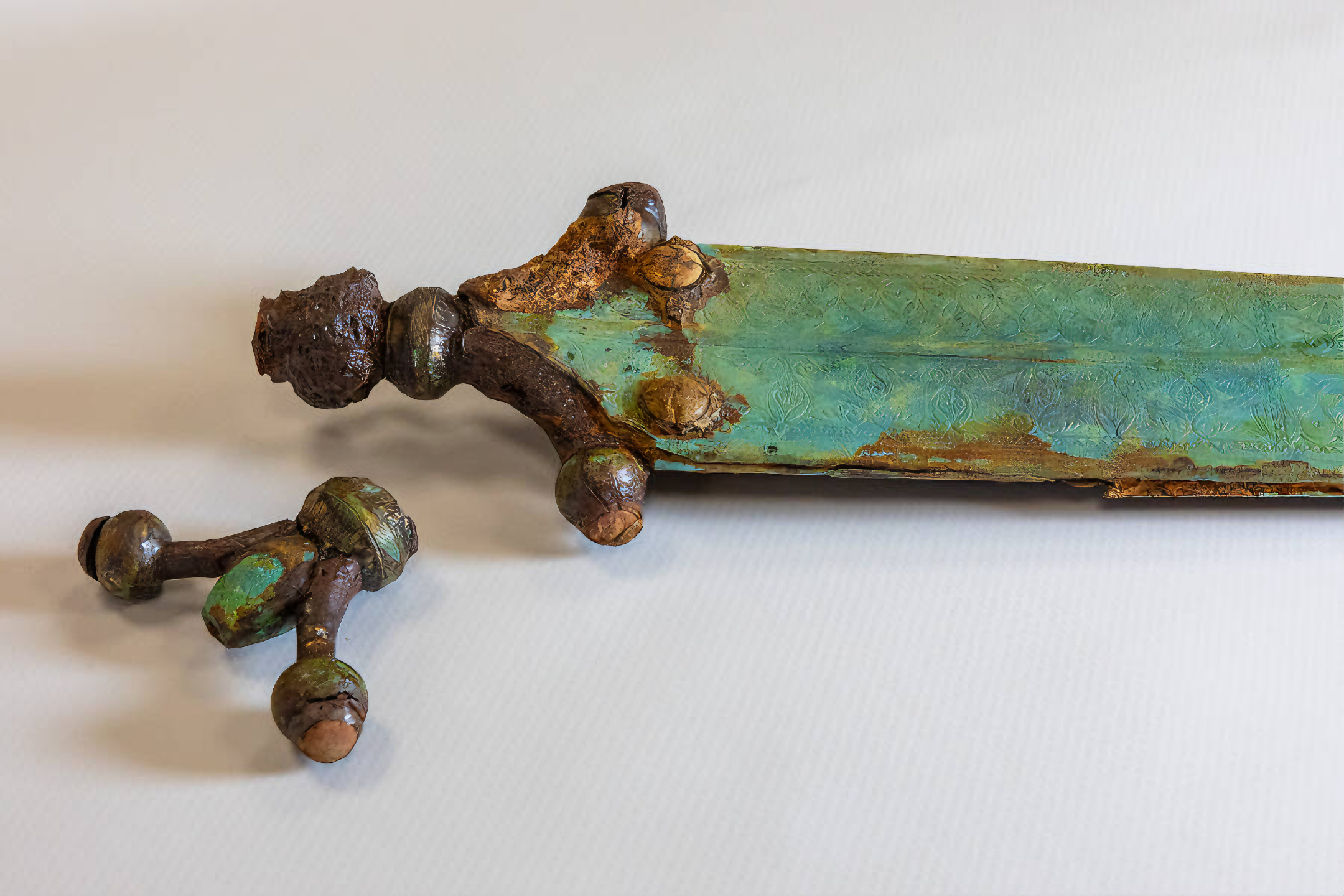 782번 무덤에서 출토된 첫 번째 칼은 허리에 차고 다닐 수 있도록 장식된 칼집이 특징인 뛰어난 무기다.
