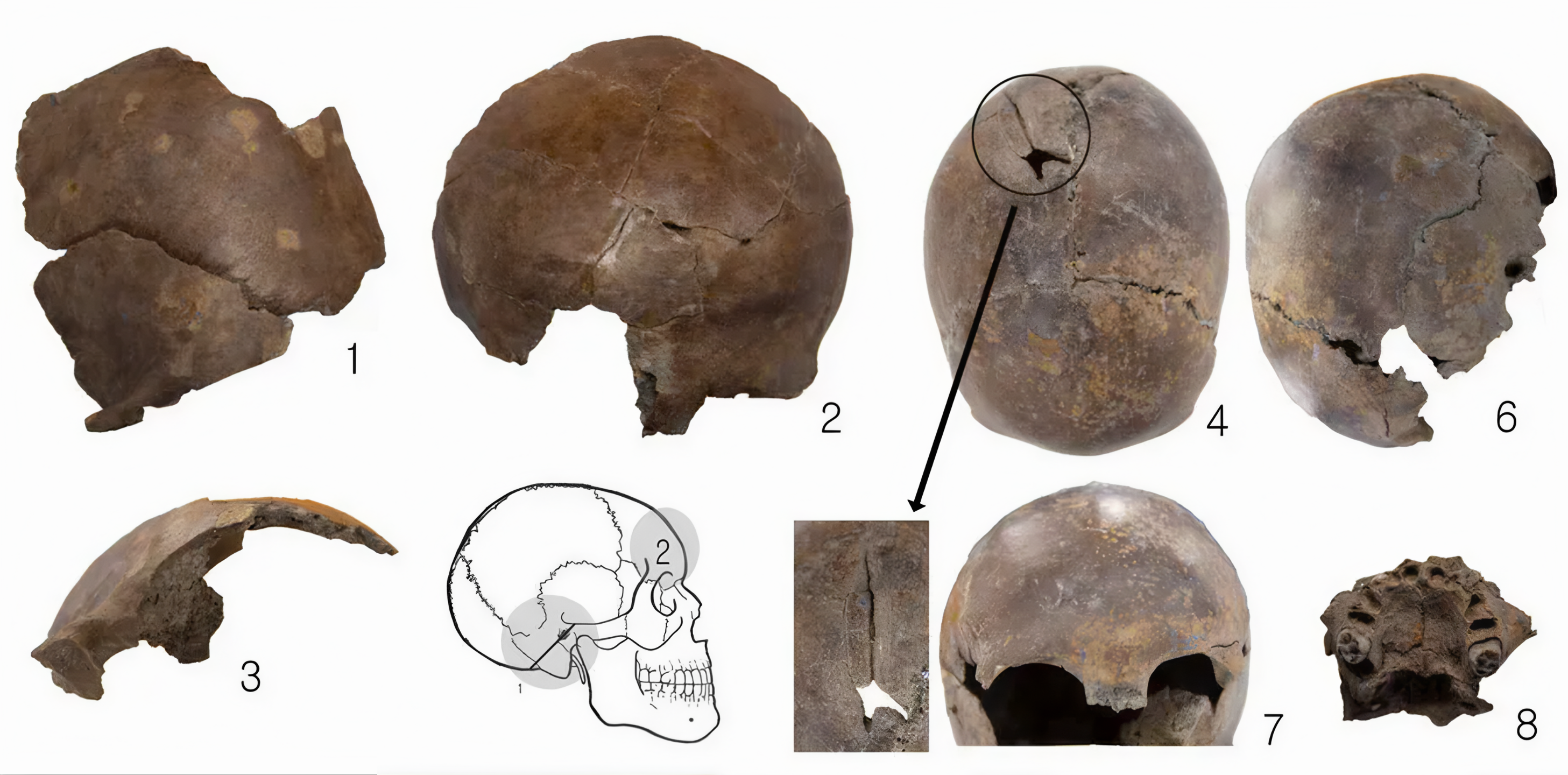 검을 찔러 넣은 자국이 남은 엉덩이 뼈도 있었는데, 완전히 죽었는지 확인하고자 찌른 흔적으로 본댄다.