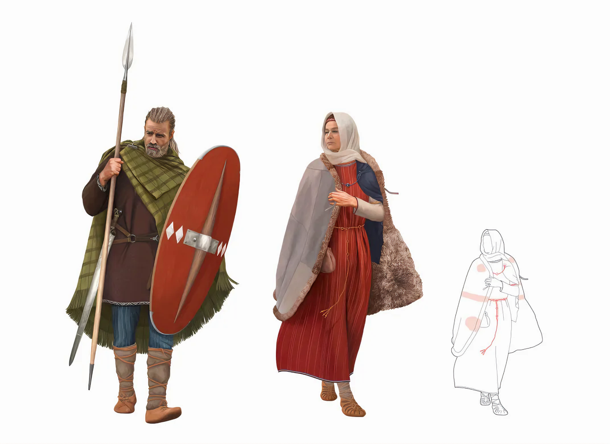 고인은 고급 양털 드레스dress of fine sheep’s wool, 숄shawl, 양가죽 코트sheepskin coat를 입고 있었는데, 아마도 높은 신분 인물이었을 것이다.