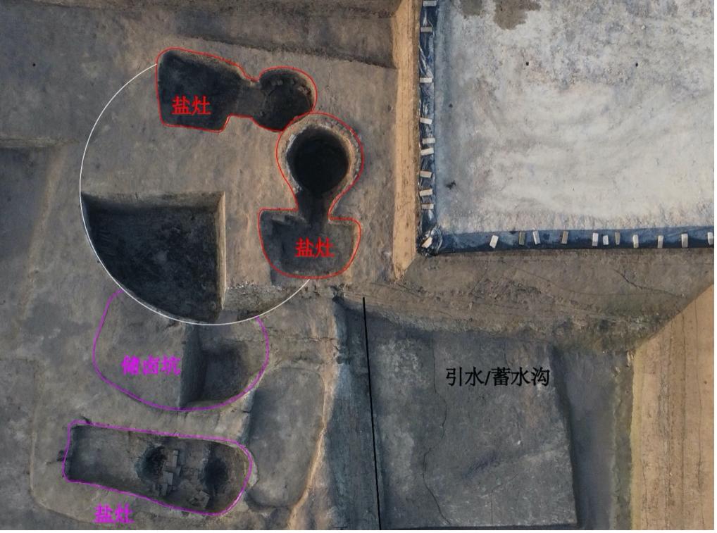 예를 들어, 몇 개의 평행하게 분포된 당송 시기 회색 도랑灰沟은 아마도 당시 "회분을 말려 염수를 채취하는[晒灰取卤]" 노점摊场이었을 것이다.