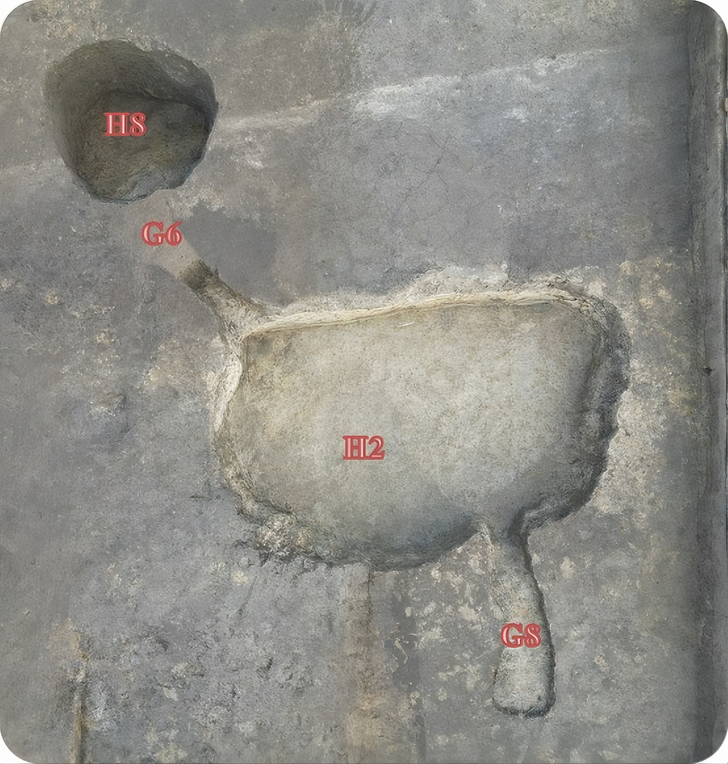염수지蓄卤池 G1의 근저에는 비교적 규칙적이고 긴 홈이 있어 해수나 염수를 저장하는 데 사용되었을 것이며, 홈 바닥의 흙은 염도 분석 및 검사를 통해 유적의 다른 지층의 염도보다 현저히 높은 것으로 확인되었다.