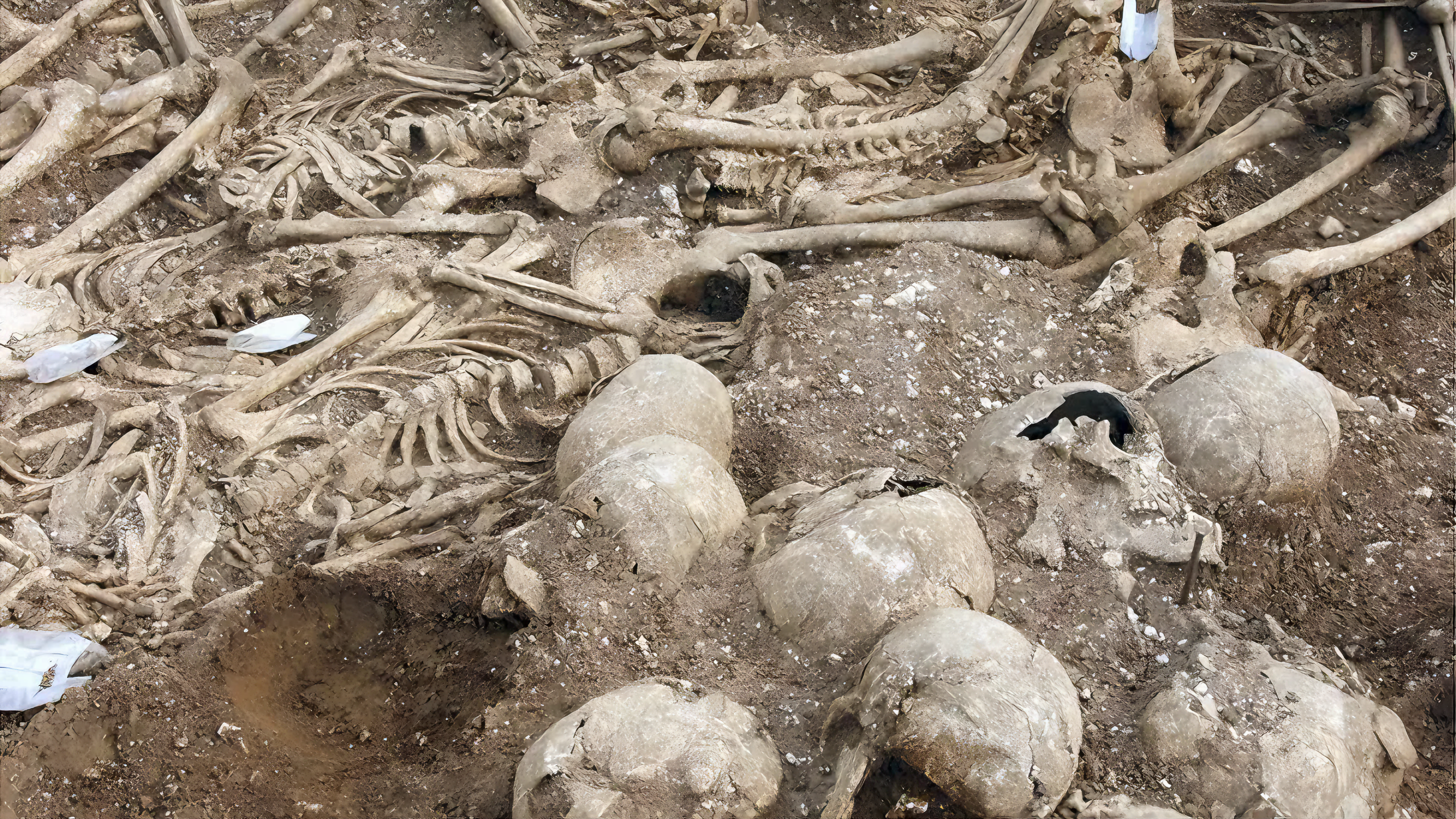 모두 참수된decapitated 상태였으며, 시신은 머리가 한쪽으로 쌓인 얕은 무덤에 묻혔다.