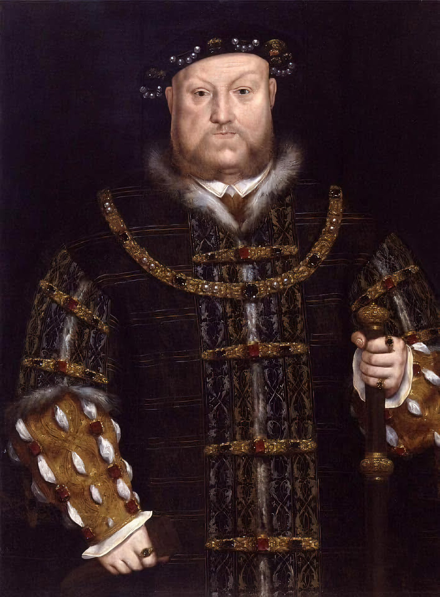 헨리 8세라고 할 때 우리가 상상하는 그 상징 초상 중 하나로 역대 영국 군주 초상 중에서도 가장 유명하다.