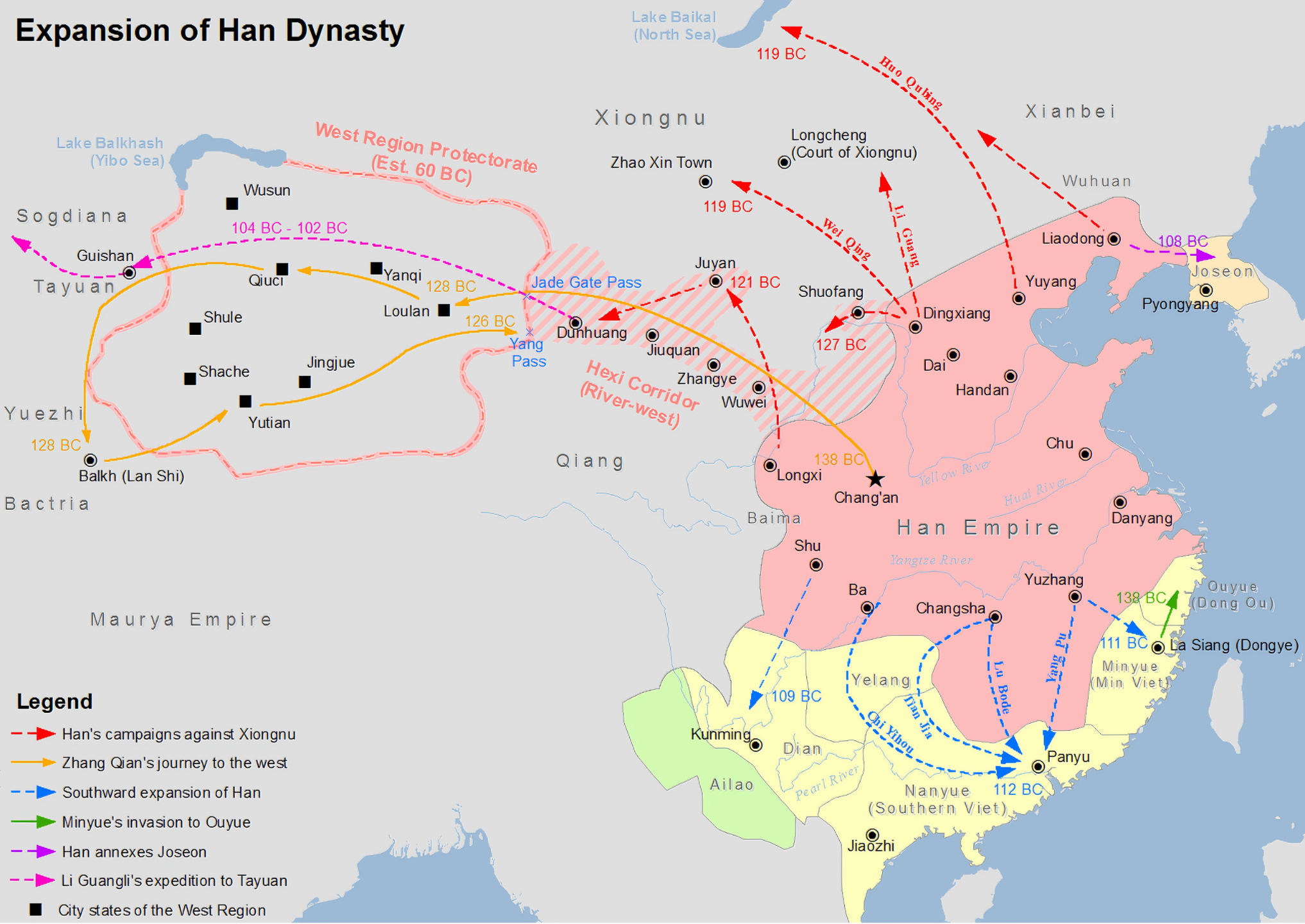 한 제국은 남쪽 남월, 그리고 동북쪽 조선, 곧 위만조선이 주변 지역을 차례로 정복해가면서 자신들한테 잠재적 위협이 될 수 있는 제국으로 형성되어 가는 과정을 넋놓고 바라볼 수밖에 없었다.