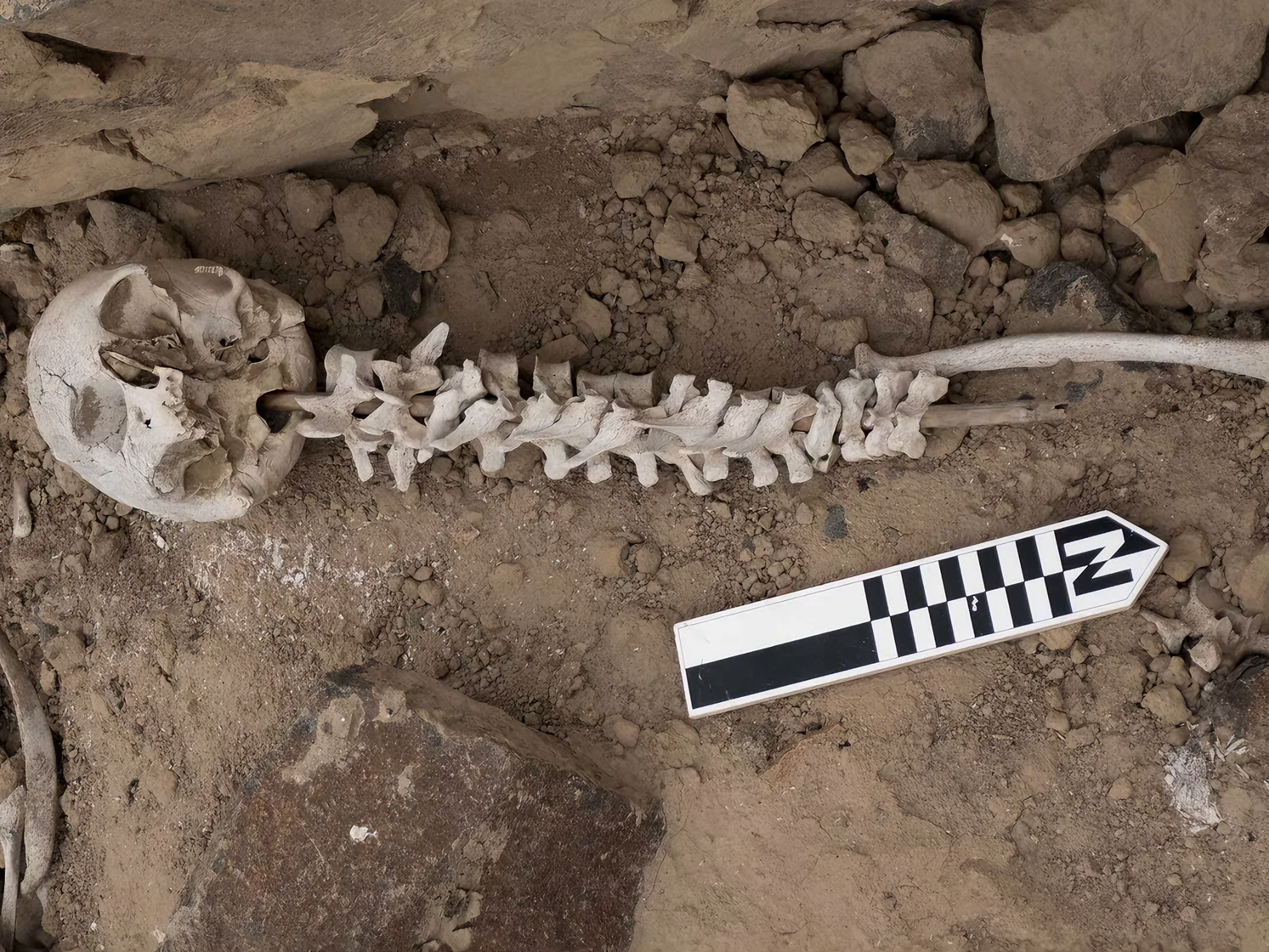 근처에 있는 두개골들은 이 척추뼈를 꿴 막대기가 훨씬 더 정교한 사후 복원의 일부였음을 암시하며, 죽음과 추모를 둘러싼 고대 의례를 생생하게 보여준다고.