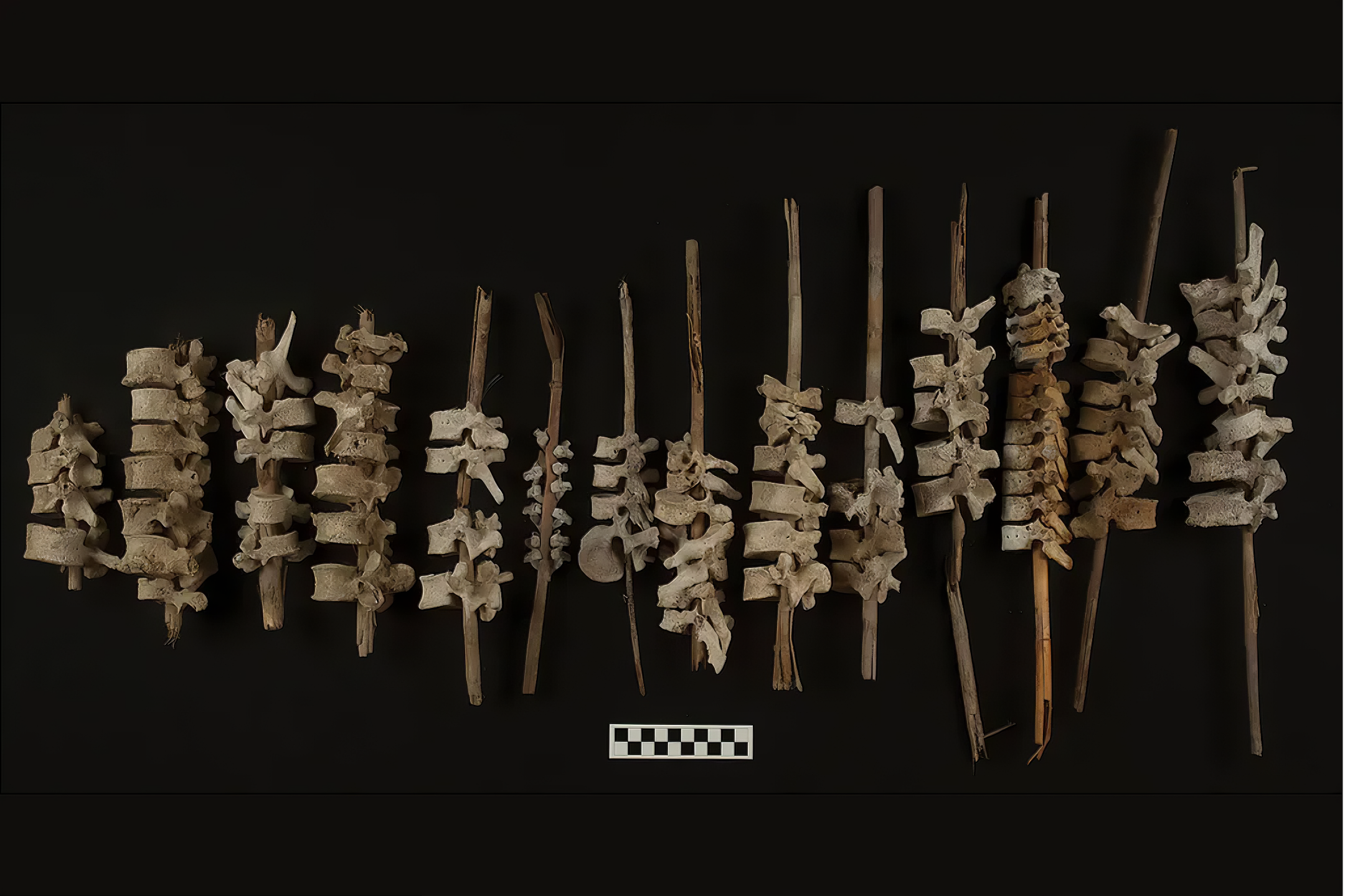 뼈 꿰미는 79점이 면밀히 조사됐다. 성인 또는 어린이 척추뼈 모음이었다.
