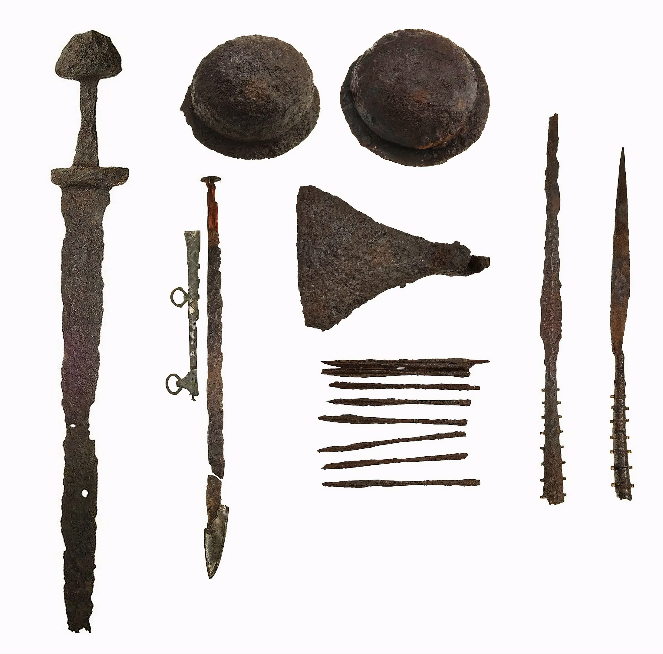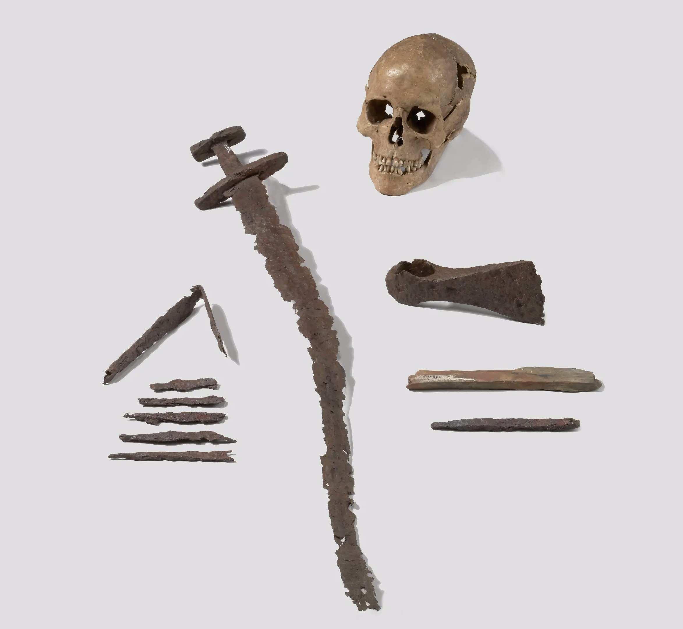 스웨덴 비르카Birka에는 약 1,000년 된 바이킹 매장이 있으며, 칼, 도끼 머리, 창, 칼, 방패, 화살통quiver 등 치명적인 무기와 라이딩 장비, 두 마리 군마 해골이 가득하다.