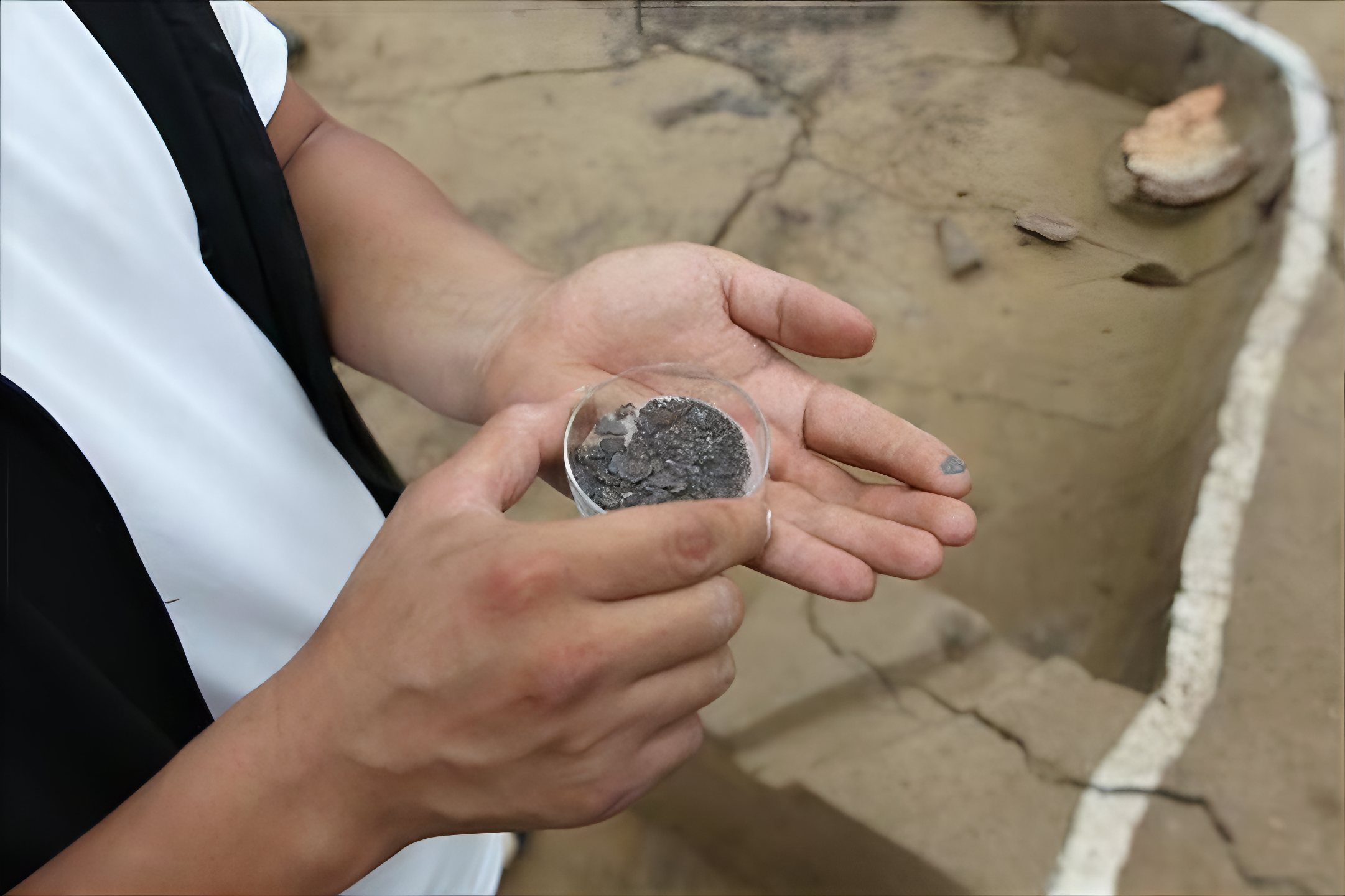 복숭아씨는 이 단야로 바닥을 해체 조사하는 과정에서 평면 원형인 바닥쪽 벽체 중앙 내부를 따라 1줄을 지어 박혀있다.