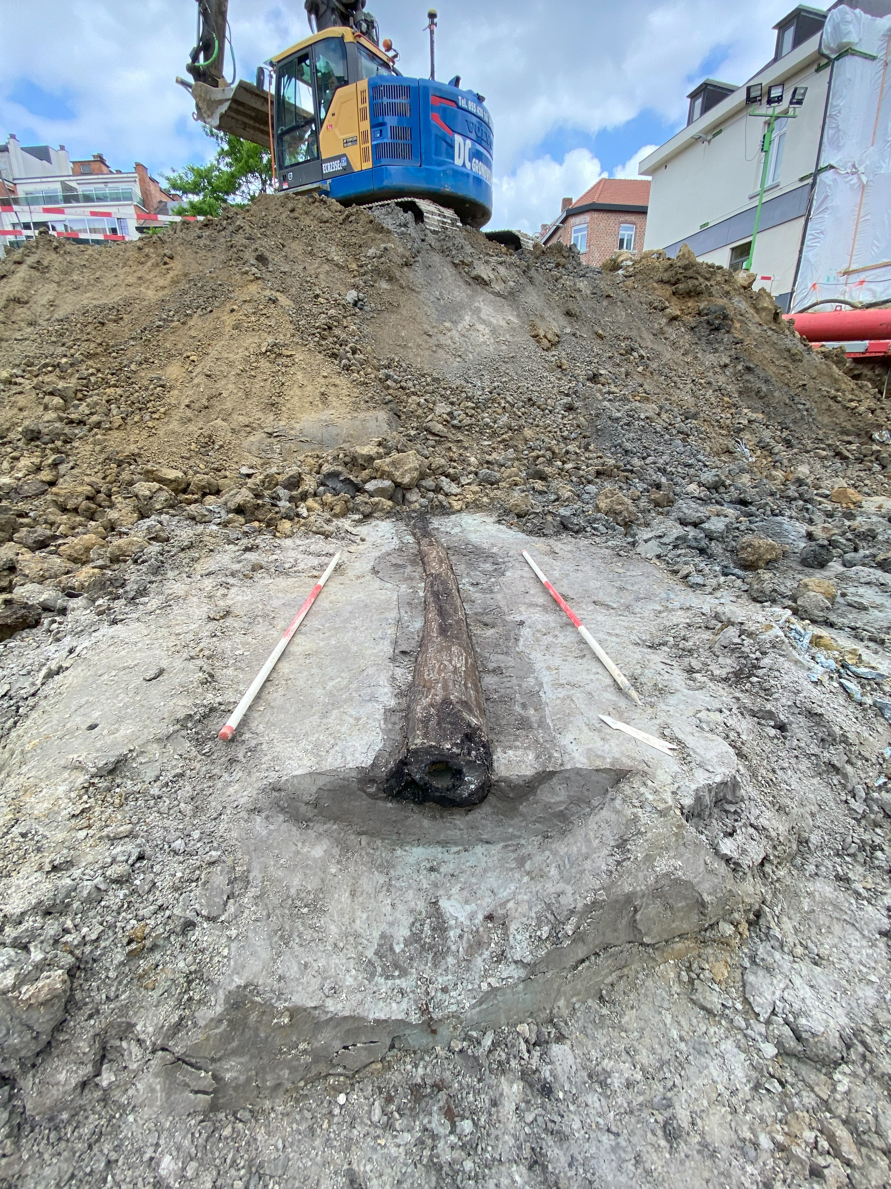 Archeologen vinden houten Romeinse waterleiding in Leuvense ondergrond