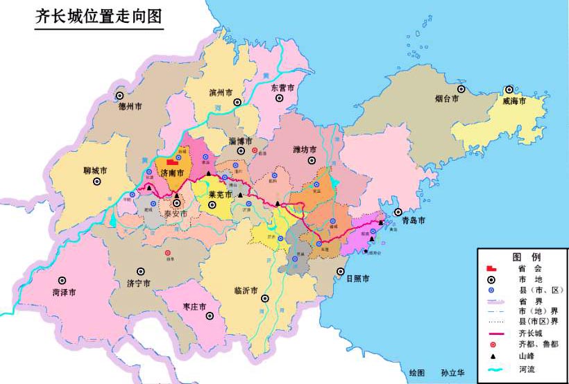제齊 만리장성은 서쪽 장칭長清에서 동쪽 칭다오靑島 해안까지 산둥성 중부를 가로지르며 약 641km에 걸쳐 뻗어 있다.