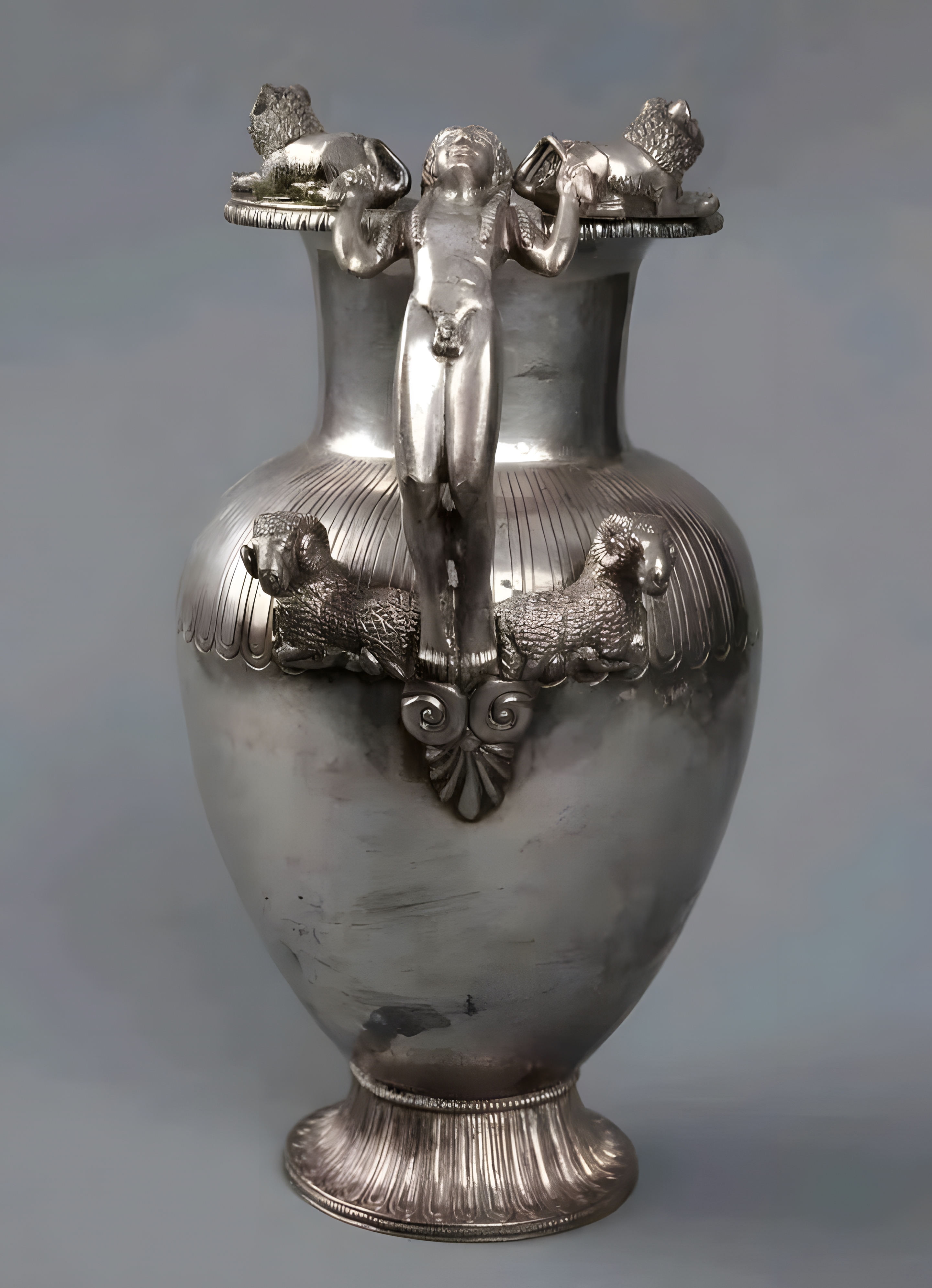 청년 모습을 활용한 손잡이는 그리스 청동기 히드리아이hydriai와 오이노코이에서는 드물지는 않지만 은으로 된 예는 현재까지 이것이 유일하다.