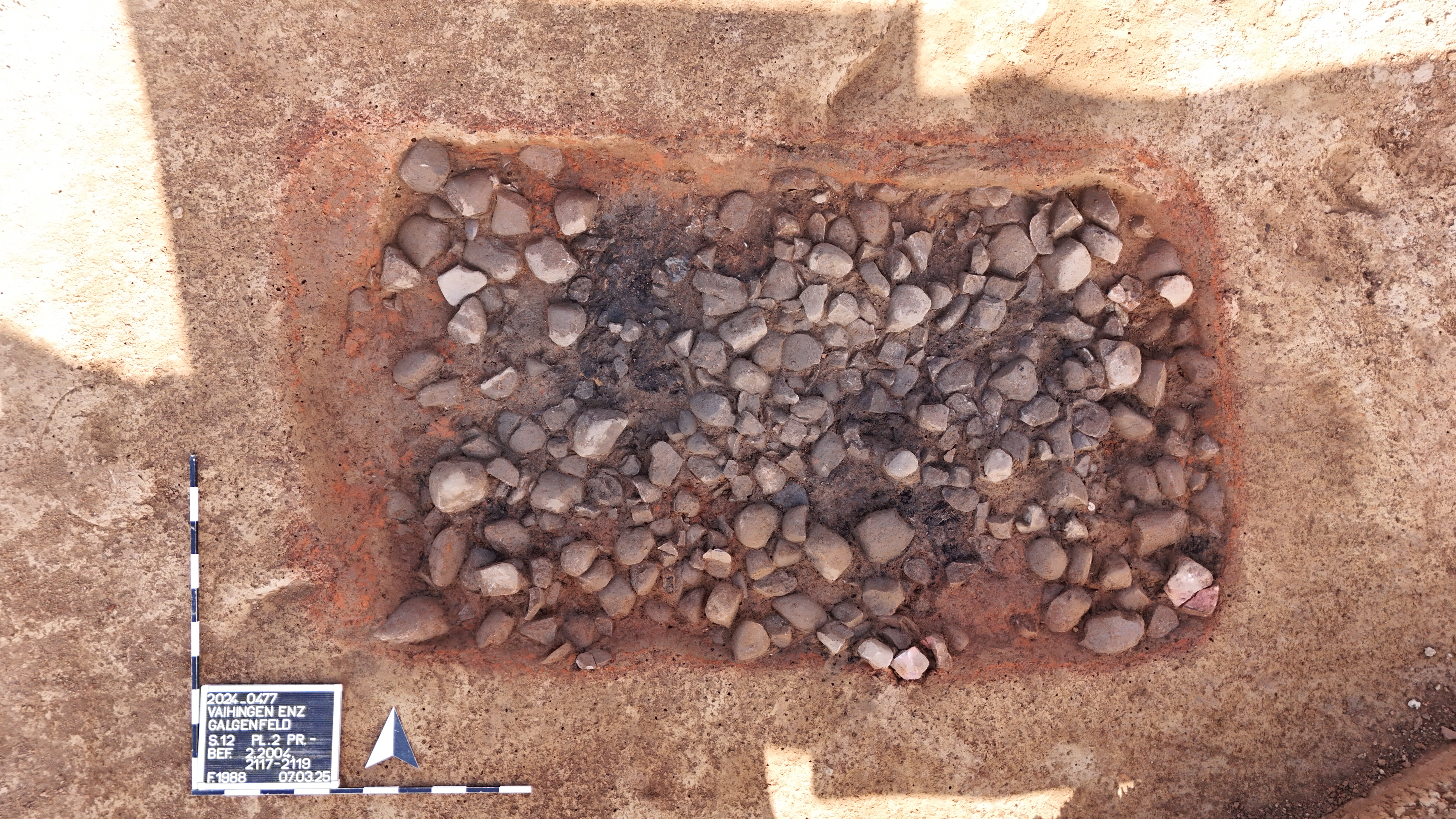 In close collaboration between the city, the heritage preservation authorities, and the excavation company, archaeological rescue excavations were carried out from September 2024 to April 2025 on the almost four-hectare site between the B10 towards Pforzheim and Stuttgarter Straße in the "Galgenfeld" area. These excavations were commissioned by the State Office for Monument Preservation (LAD) in the Stuttgart Regional Council in advance of the development of the planned "Wolfsberg IV" commercial area. The area lies within the area of a "Neolithic Settlement" cultural monument. Since 1987, so-called Linear Pottery culture settlement traces and graves from the Neolithic period (ca. 5,000 BC) have been repeatedly discovered in the immediate vicinity during development and construction work. The Linear Pottery culture was the first agricultural and livestock farmers in Baden-Württemberg.