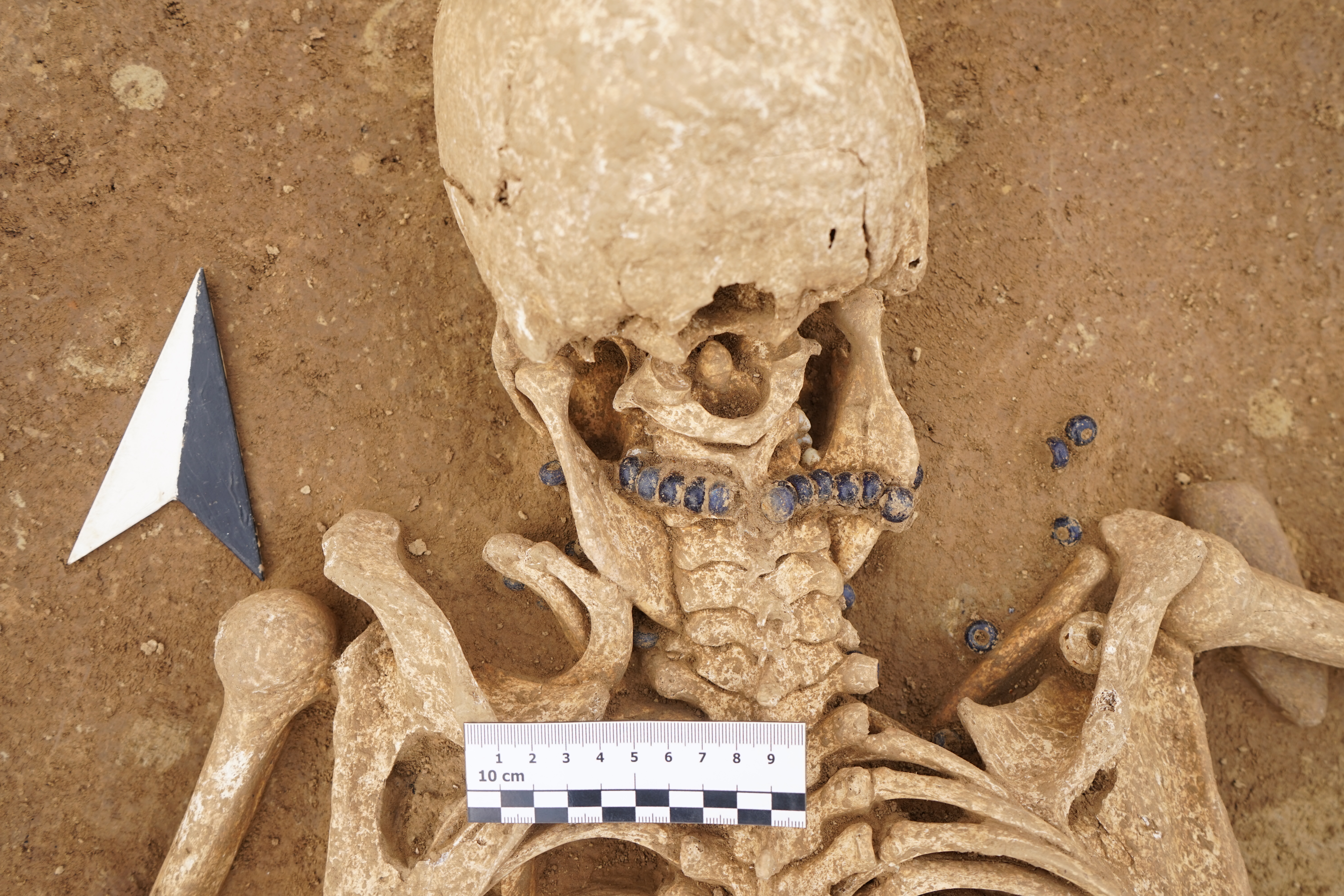 소녀는 청동 팔찌 두 개를, 다른 성인 여성은 파란색 유리 구슬을 끈에 꿰어 만든 목걸이를 착용하고 있었다.
