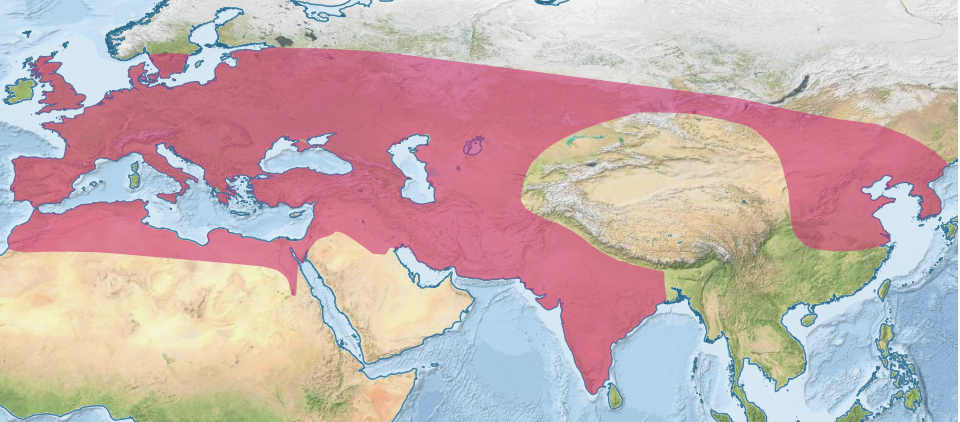 이 종은 서유럽과 북아프리카에서 인도 아대륙과 동아시아에 이르기까지 광범위한 서식지를 지녔다.