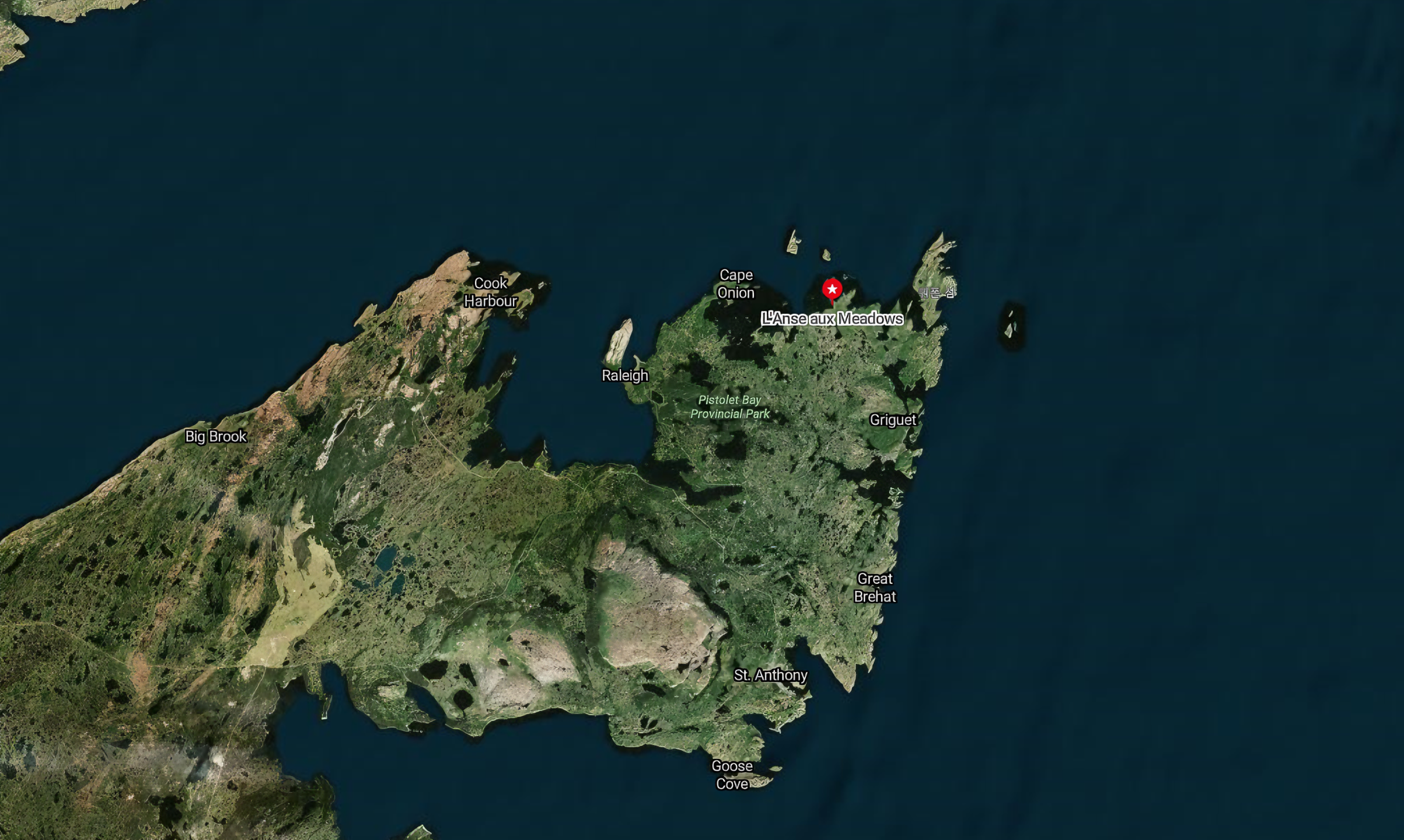 보다시피 뉴펀들랜드 Newfoundland 섬은 북쪽으로 다시 툭 튀어나온 반도 하나가 있으니