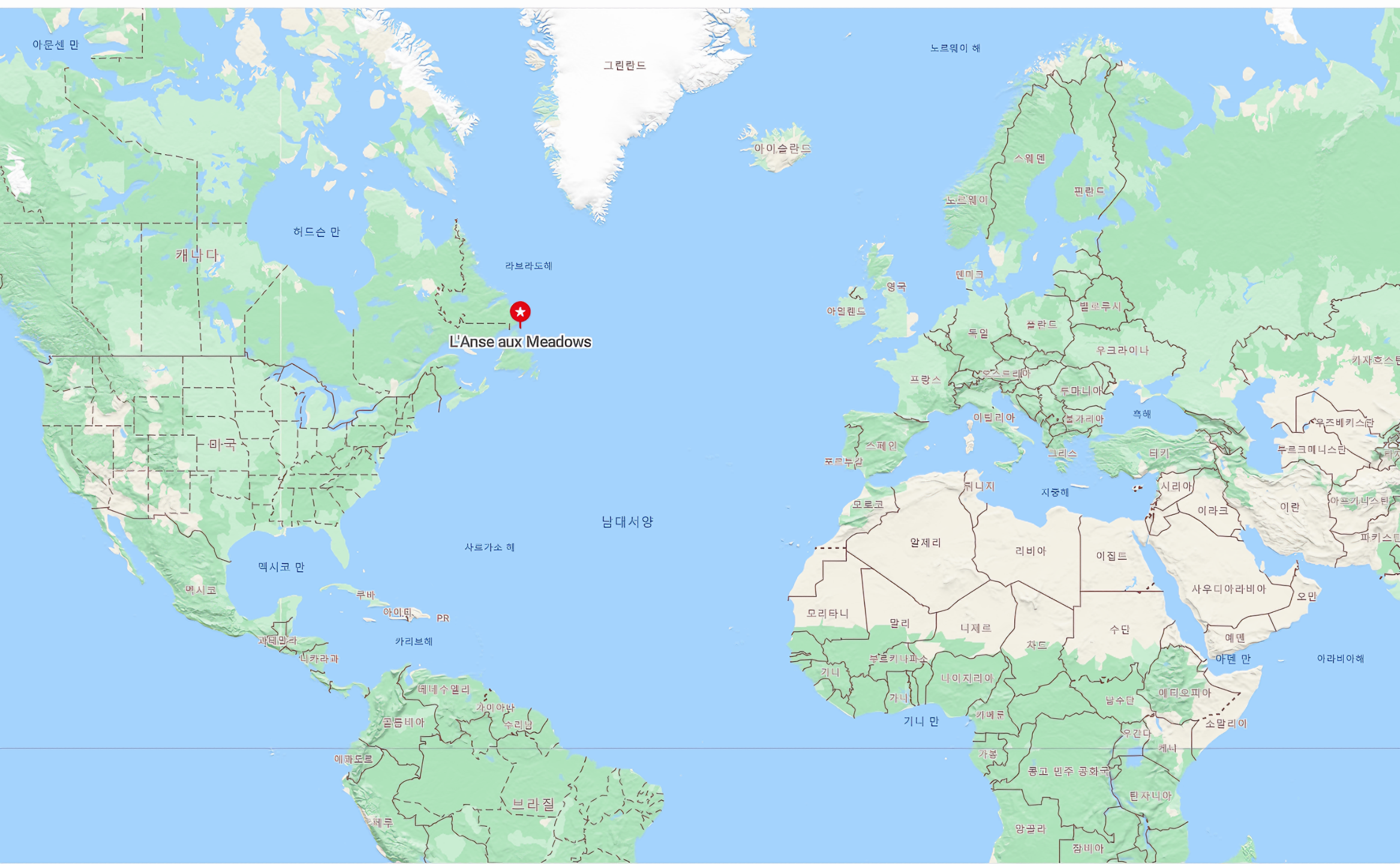 개떡 같은 게 L’Anse aux는 프랑스어요, Meadows는 영어라 짬뽕이다.