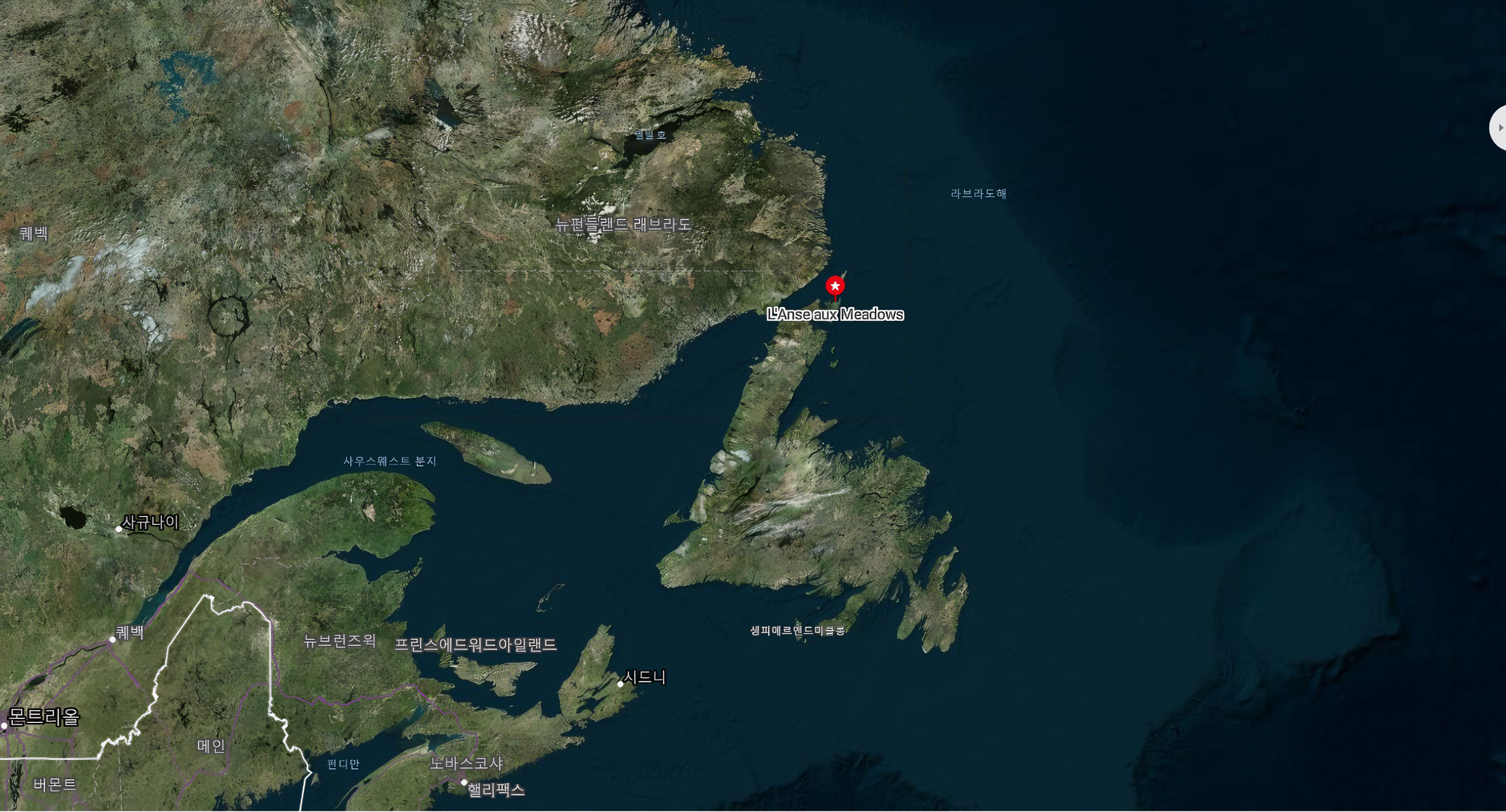 보다시피 뉴펀들랜드 Newfoundland 섬은 북쪽으로 다시 툭 튀어나온 반도 하나가 있으니