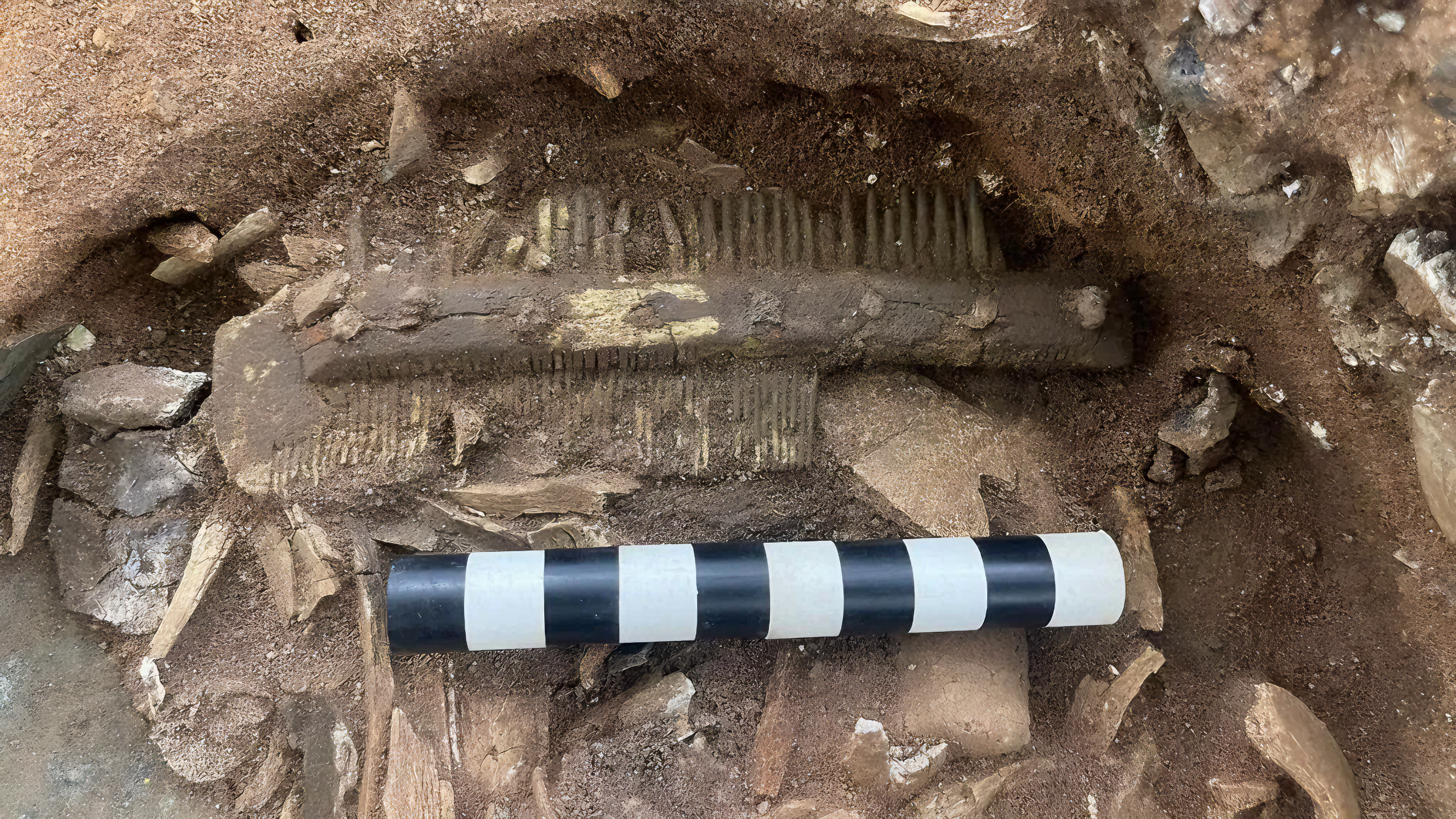 화장한 뼈와 함께 빗이 보인다. 왜 빗일까? 화장했는데? FAS Heritage/National Trust