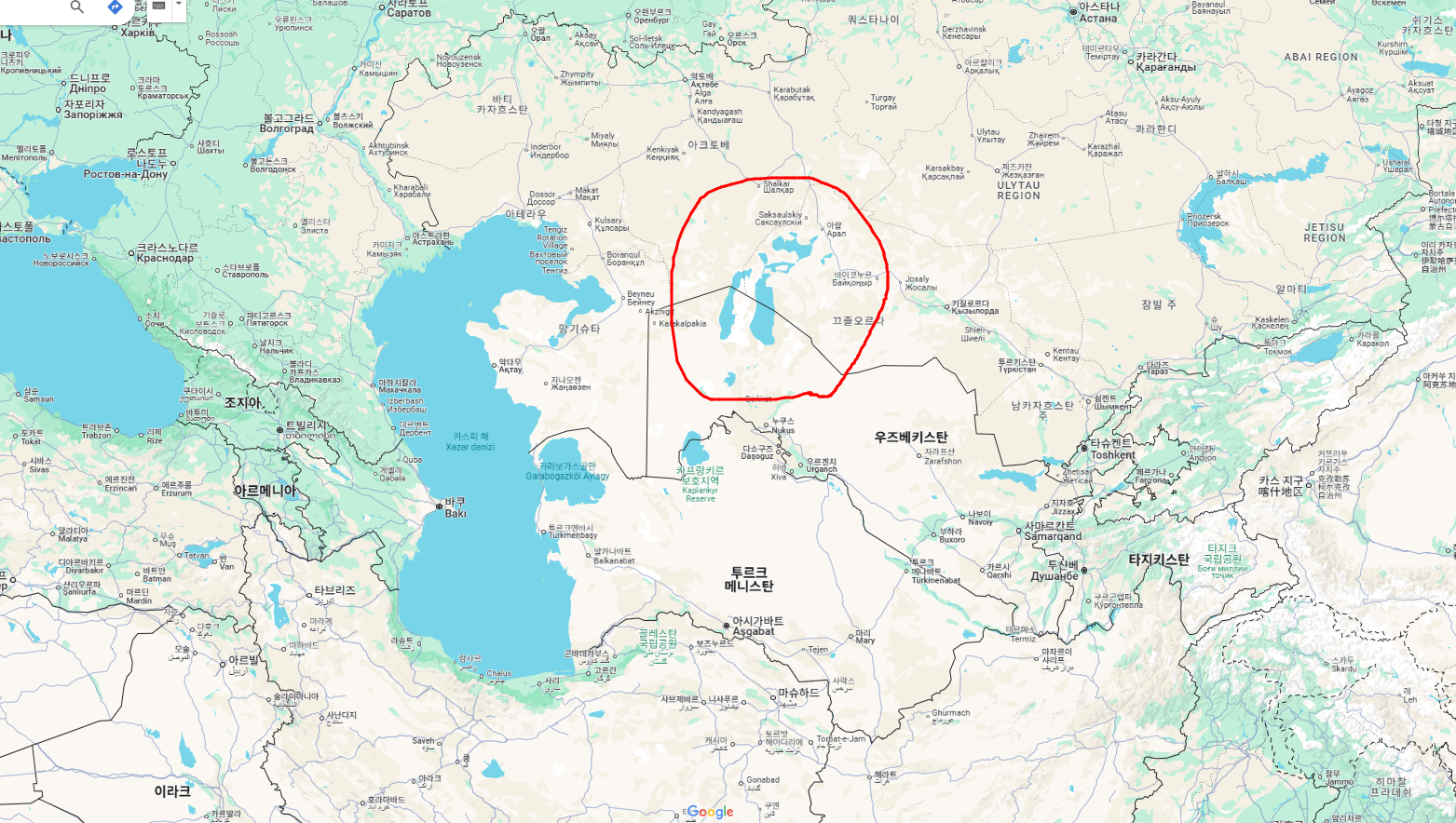 나한테 그렇게 각인한 아랄해를 우연히 찾아 보니 아예 없어졌다!