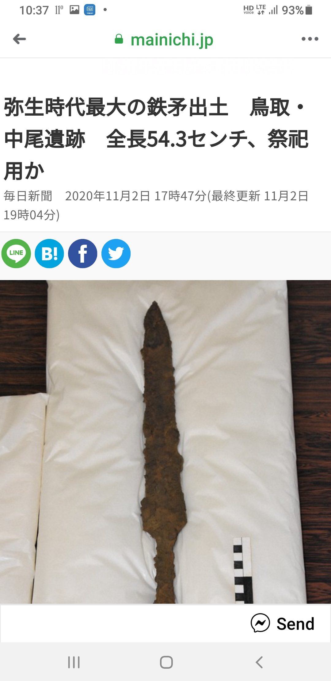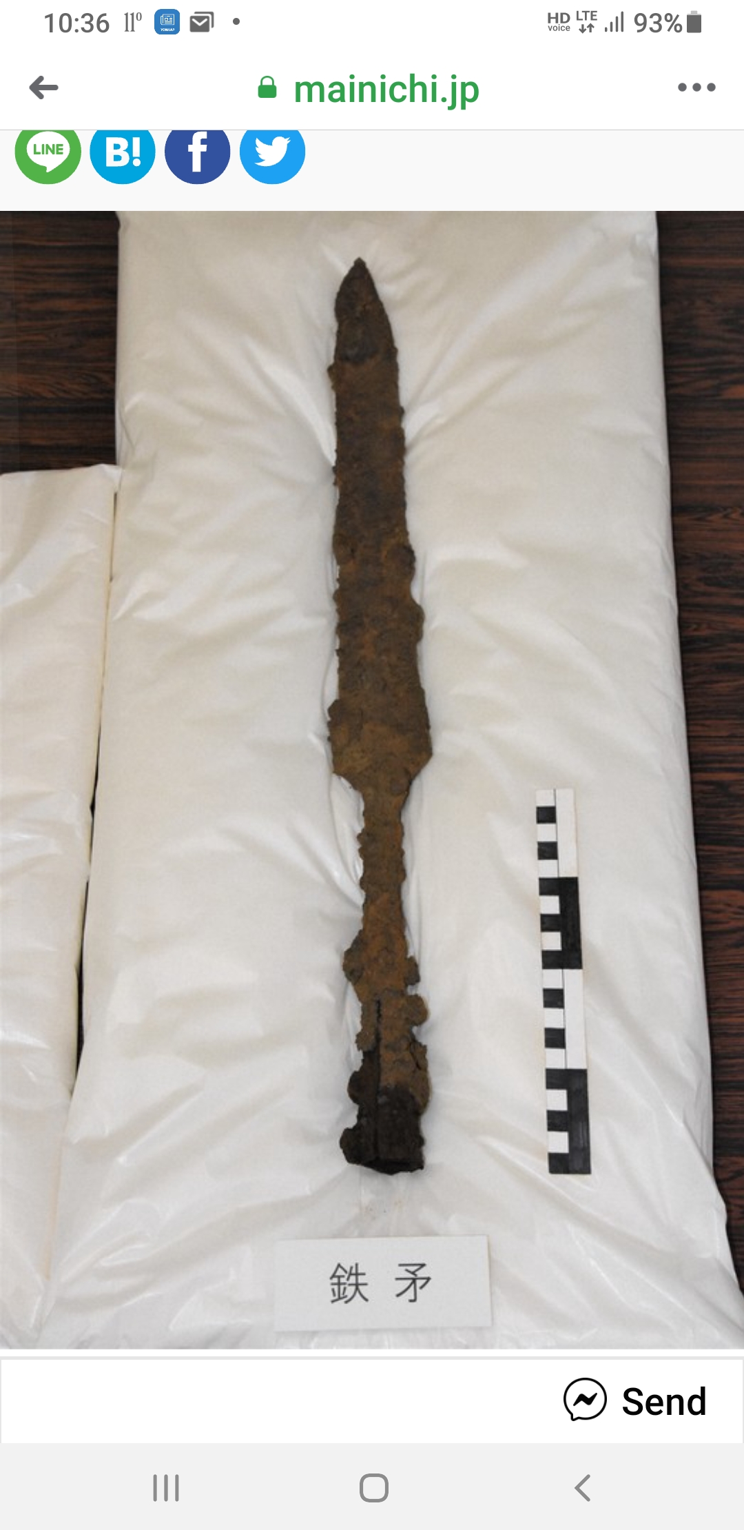 鳥取県 倉吉市 시내 中尾遺跡이라는 데를 일본 친구들이 판 모양인데 弥生時代 中期 무렵 수혈주거지竪穴住居跡에서 일본에서 발견된 弥生時代 칼로는 가장 큰 길이 54・3센티 철모鉄矛가 출토했다는데