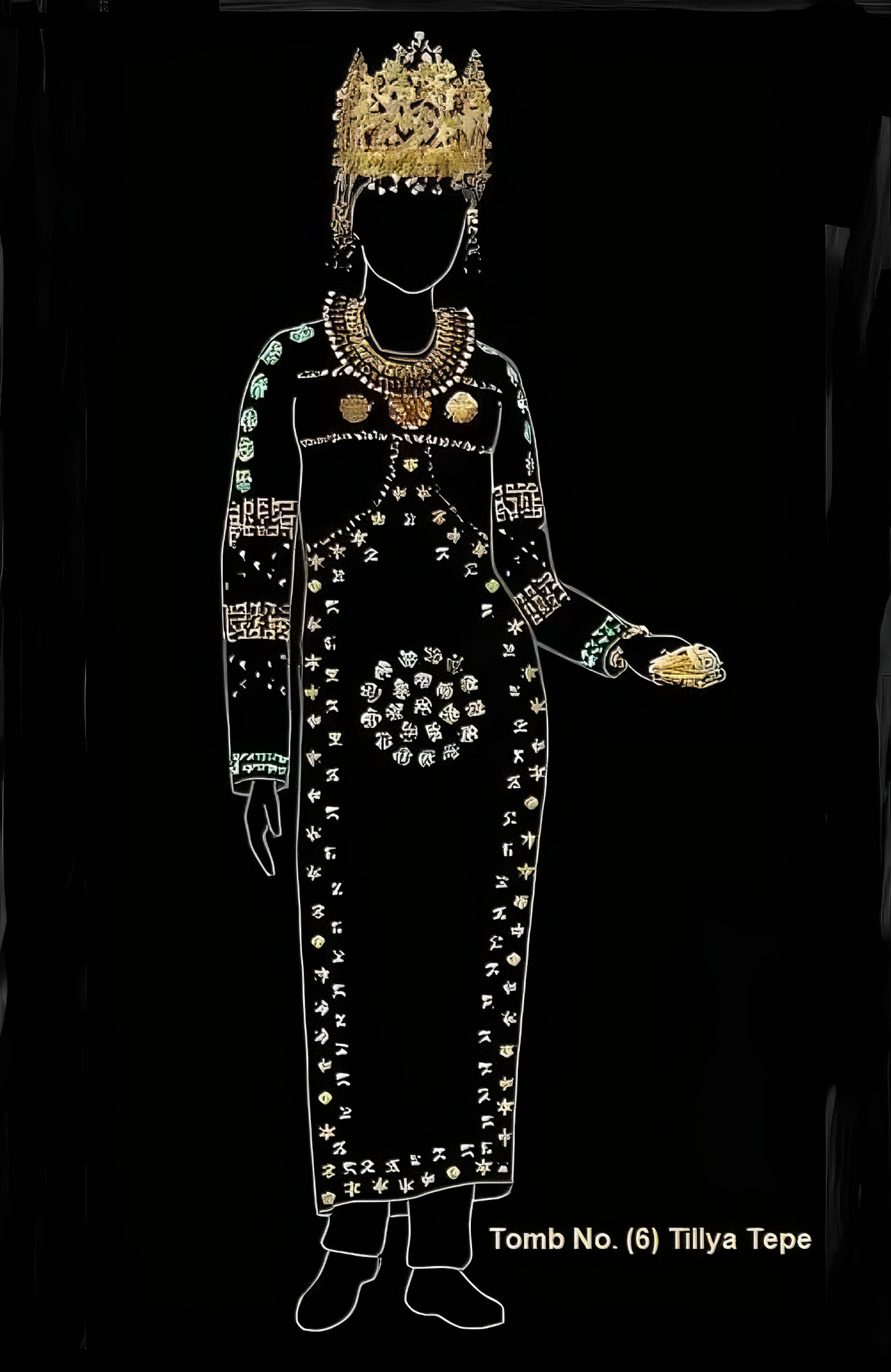 아프가니스탄 북부 조우잔Jowzjan 주에 위치한 틸리야 테페 유적에서 1978년부터 1979년까지 진행된 고고학 발굴을 통해 발굴된 여섯 개 왕릉 중, 6번 무덤은 가장 풍부하고 신비로운 무덤 중 하나로 손꼽힌다.