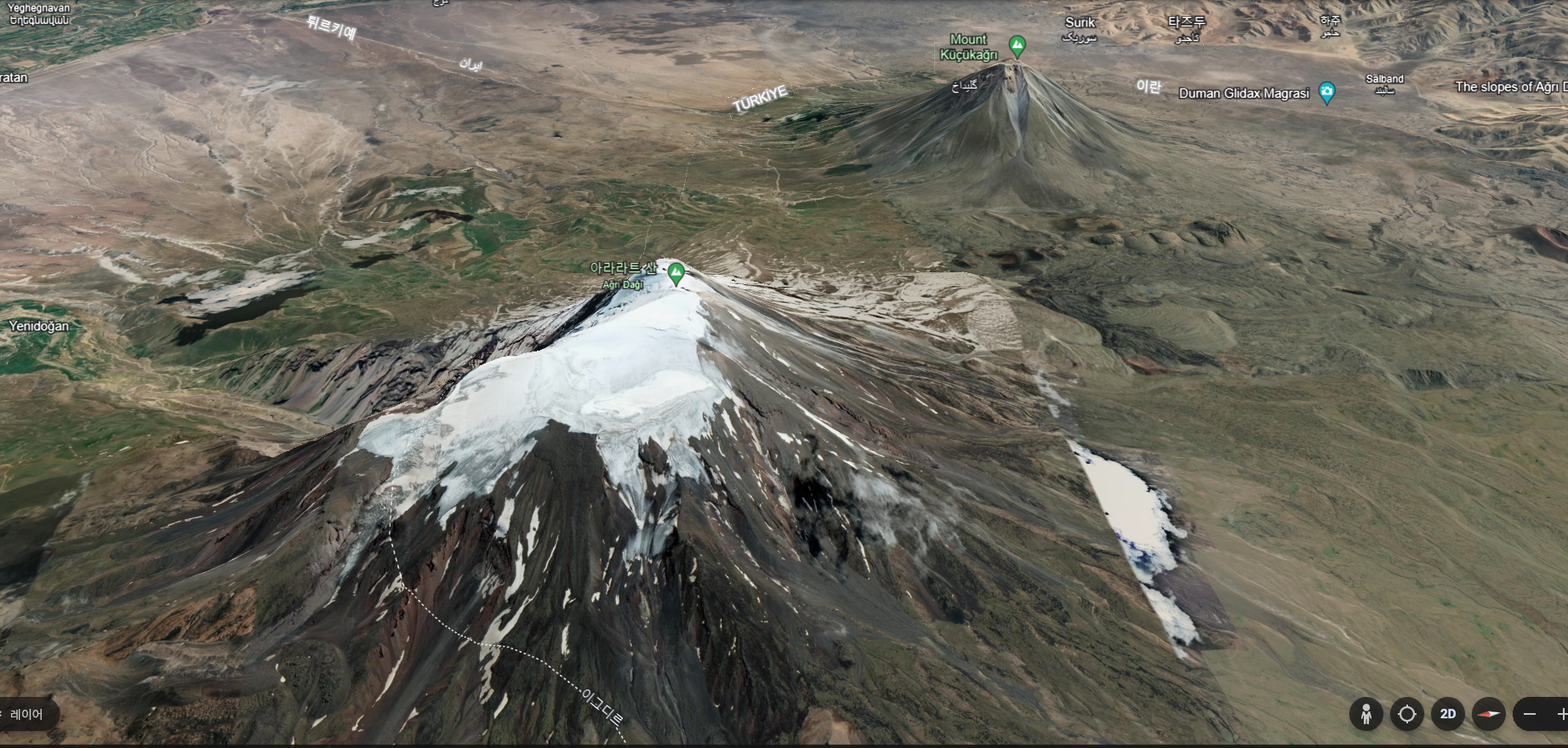 아라라트 산괴 Ararat massif는 지상 기지 폭이 약 35km다.