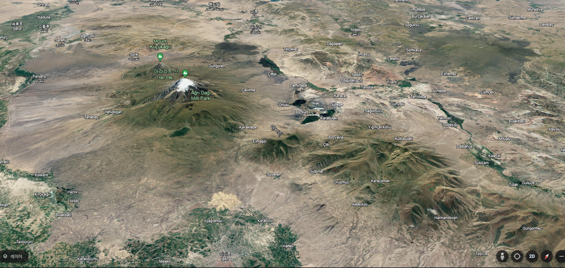 아라라트 산괴 Ararat massif는 지상 기지 폭이 약 35km다.