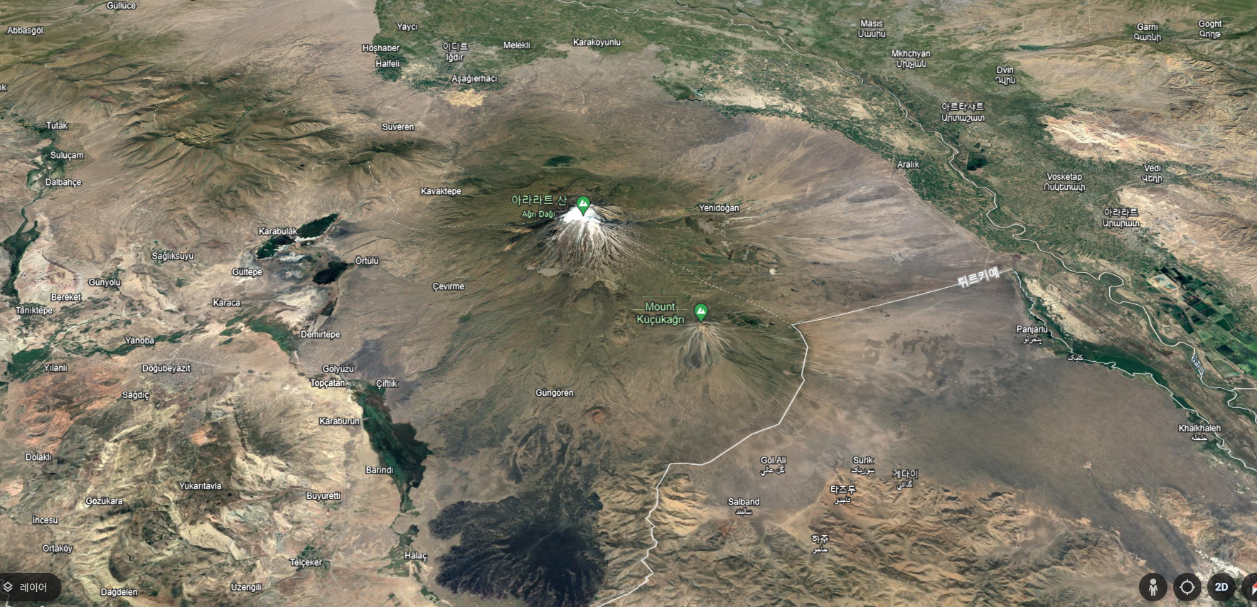 이란-터키 경계는 아라라트 대산괴의 낮은 봉우리인 소아라라트(또는 리틀 아라라트) 동쪽에 있다.