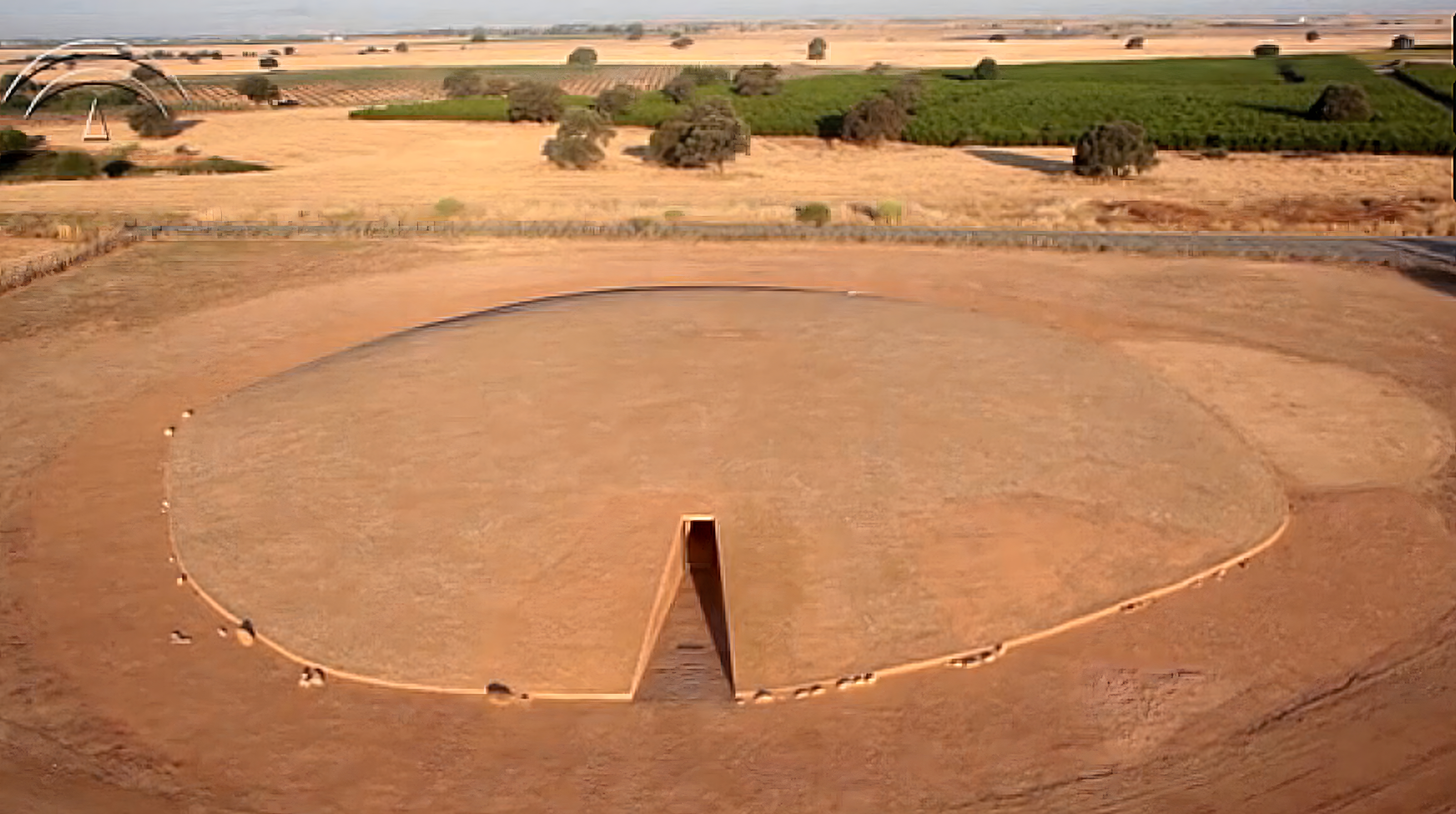 이 웅장한 거석 단지는 지름 약 60m 큰 흙 언덕으로 덮여 있으며, 지름 65m 돌로 둘러싸여 있다.