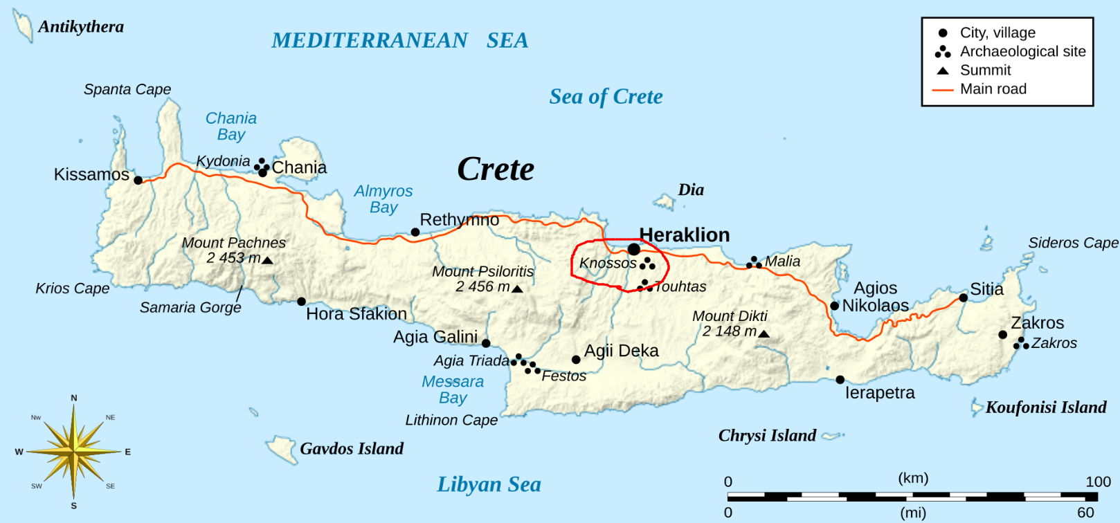 Region ; North central coast, 5 km (3.1 mi) southeast of Heraklion