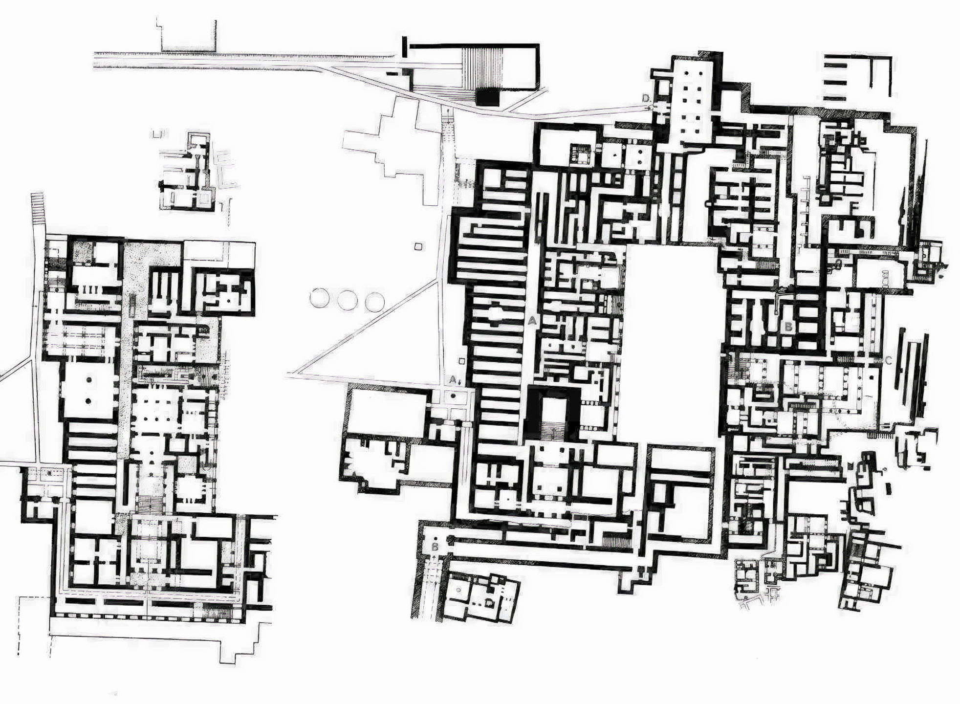 서쪽 건물west wing에는 삼자당 성소Tripartite Shrine, 신성한 저장소Sacred Repositories, 기둥 지하실Pillar Crypts 등 행정 및 종교 활동을 위한 공식 회의실이 입주해 있었다.